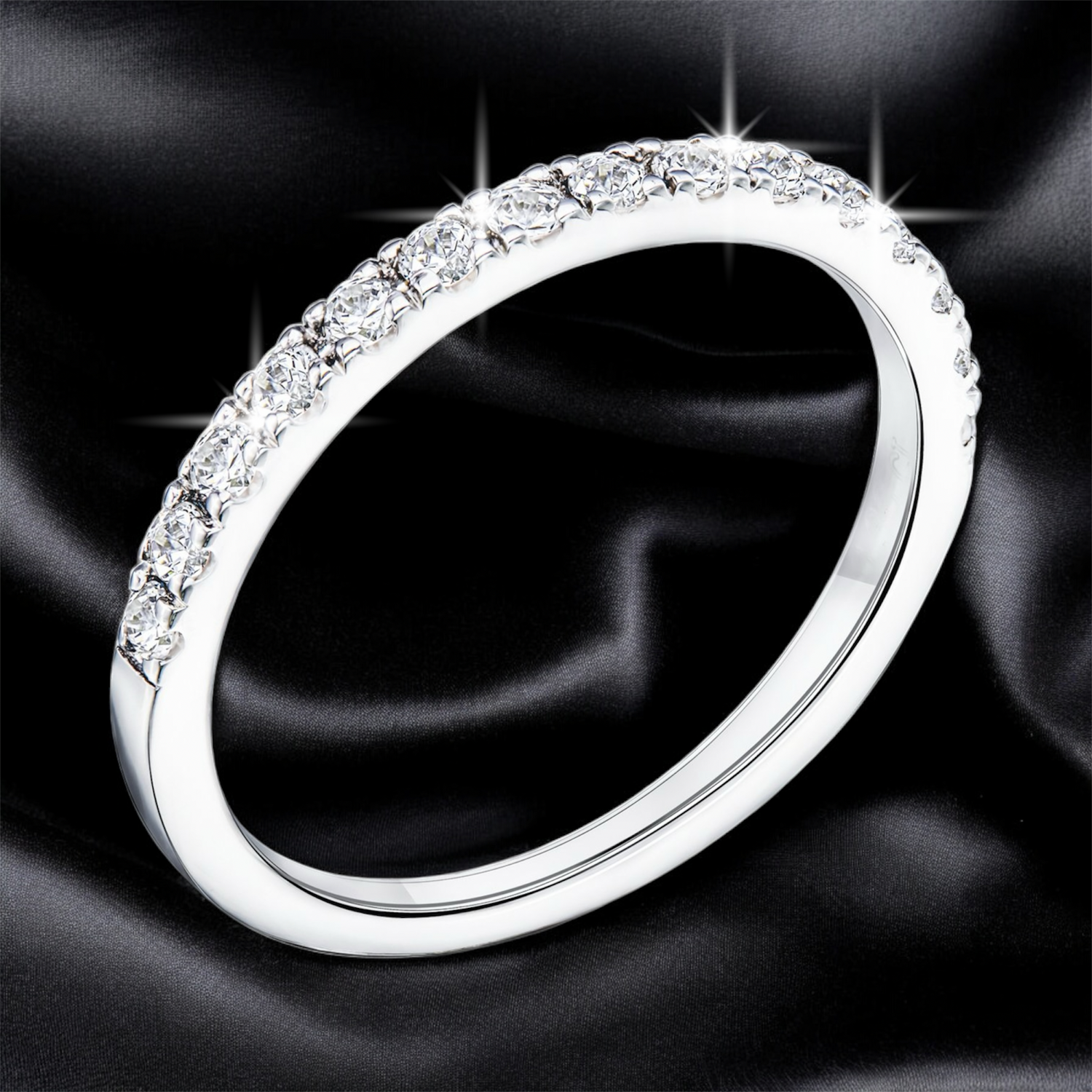 En alliansring har små diamanter som är satta tätt tillsammans längs ringen, ofta med pavéinfattning, vilket skapar en kontinuerlig gnistrande effekt. Denna design ger extra lyster jämfört med en slät ring.