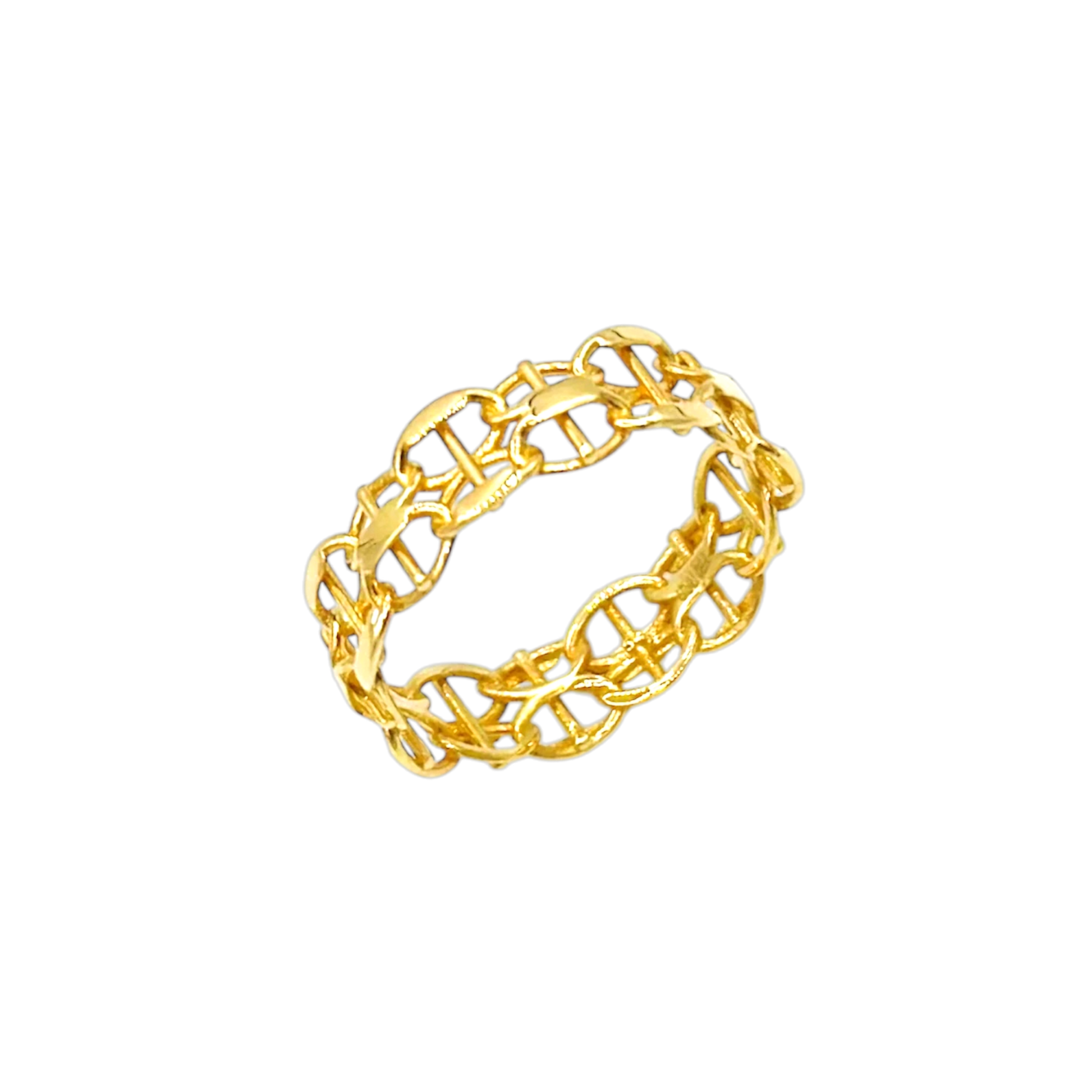 Upptäck elegansen i vår exklusiva 1x länk guldring, handgjord i 18 karat guld. Med sin tidlösa design och subtila länkstruktur är denna ring en perfekt balans mellan klassisk charm och modern enkelhet. En idealisk accessoar för att lyfta din vardagsstil eller som en sofistikerad detalj vid festliga tillfällen.