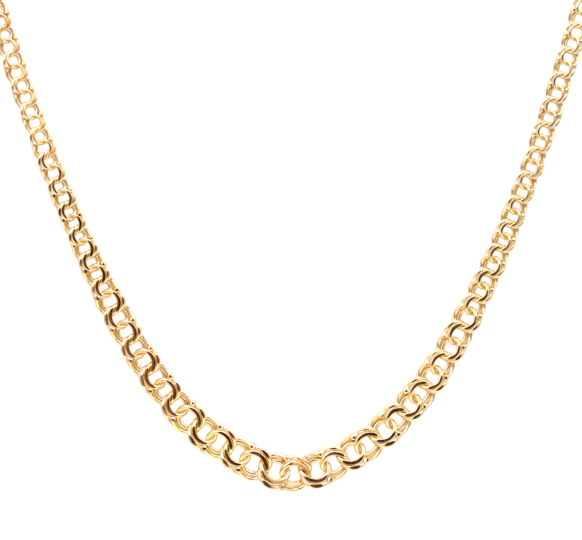 Upptäck elegansen i vårt doserade Bismarck halsband, tillverkat av 18 karat guld för en sofistikerad och klassisk look. Med sin ikoniska och intrikata kedjedesign erbjuder detta halsband både styrka och stil, perfekt för att framhäva din personliga smak.