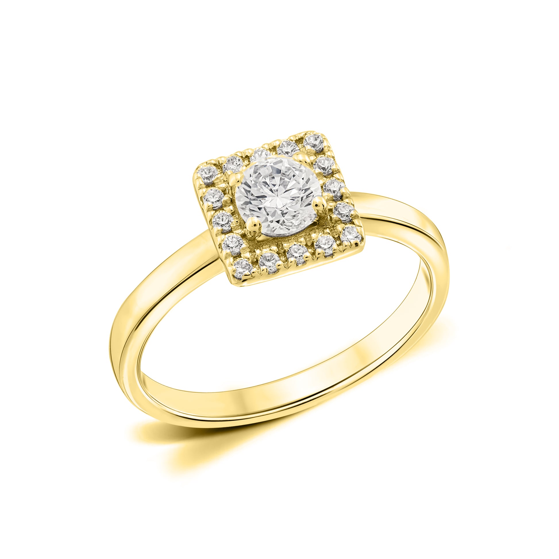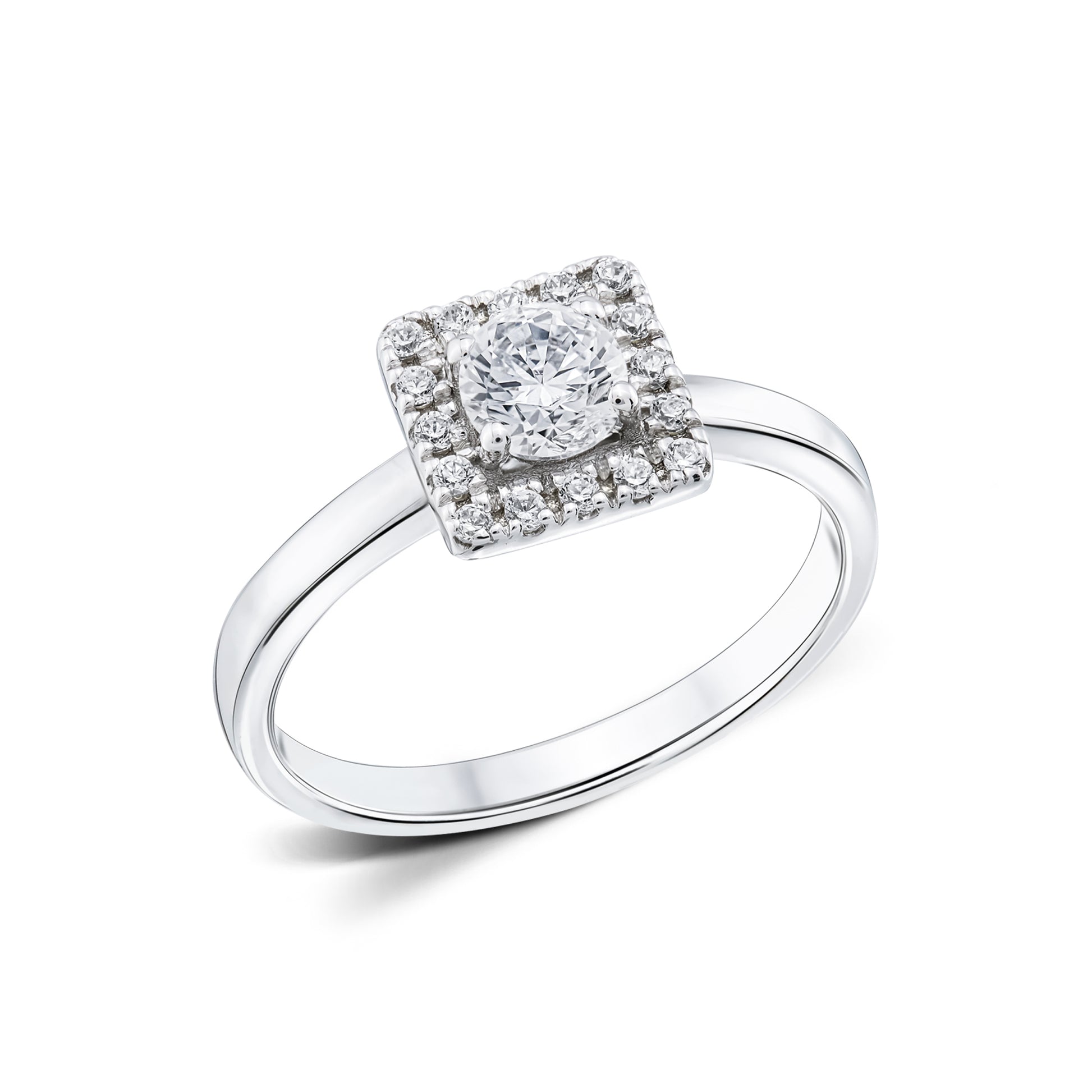The halo ring Ariel is a shining beauty. By mixing a traditional round diamond with an elegant square surround of smaller diamonds, a stunningly beautiful and unique design is created that captures the attention of all who see it. The center diamond in combination with the halo diamonds creates a magical glow that is irresistible. The halo diamonds have a total weight of approx. 0.24 Carat.
