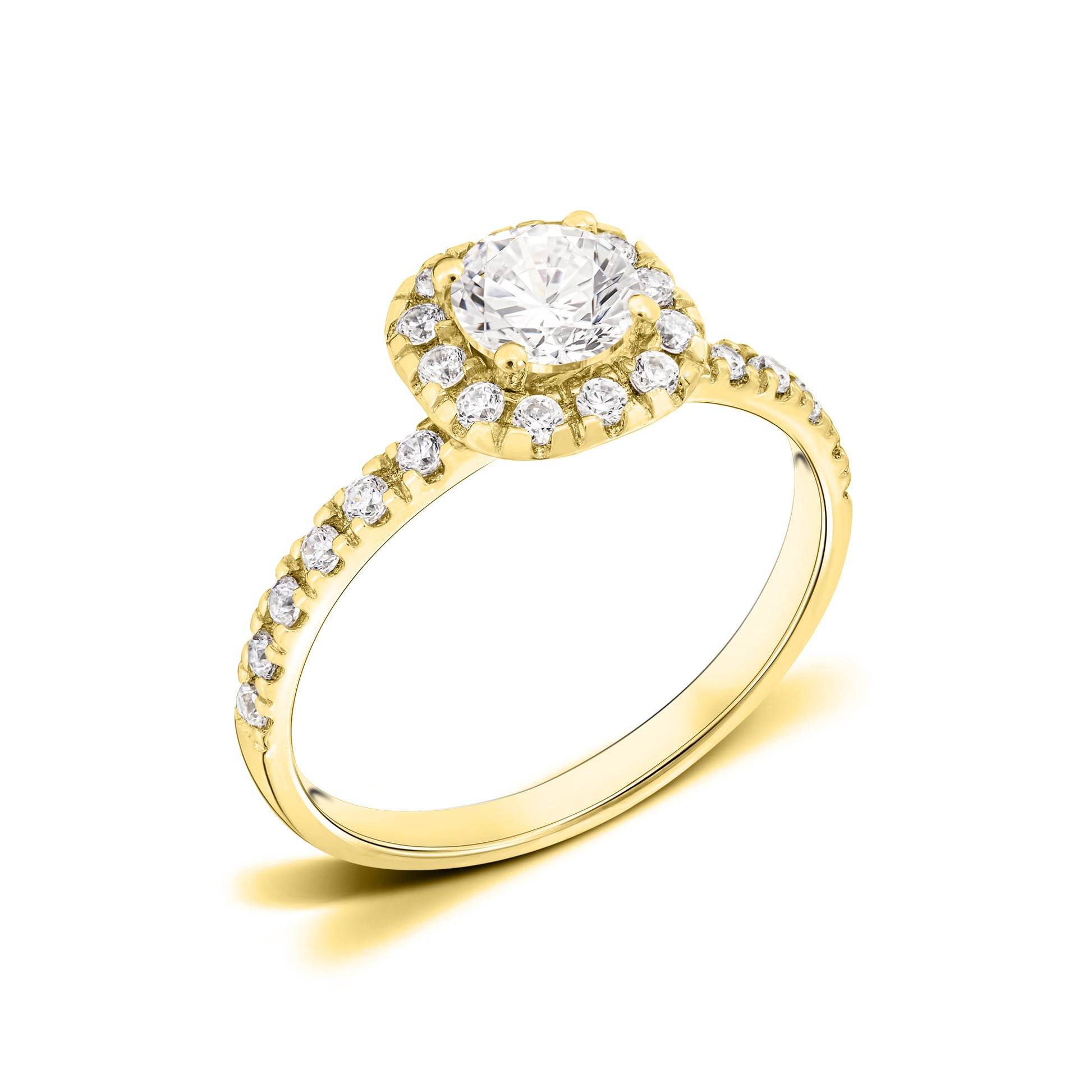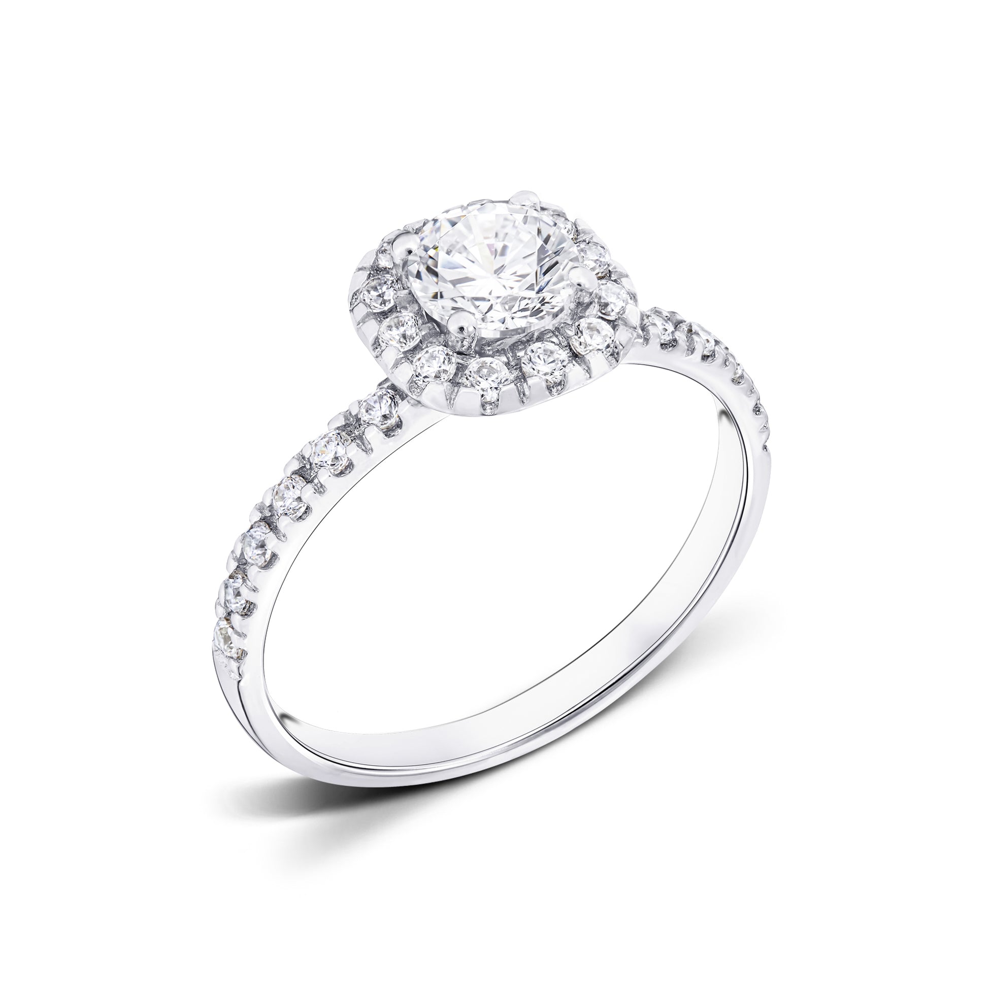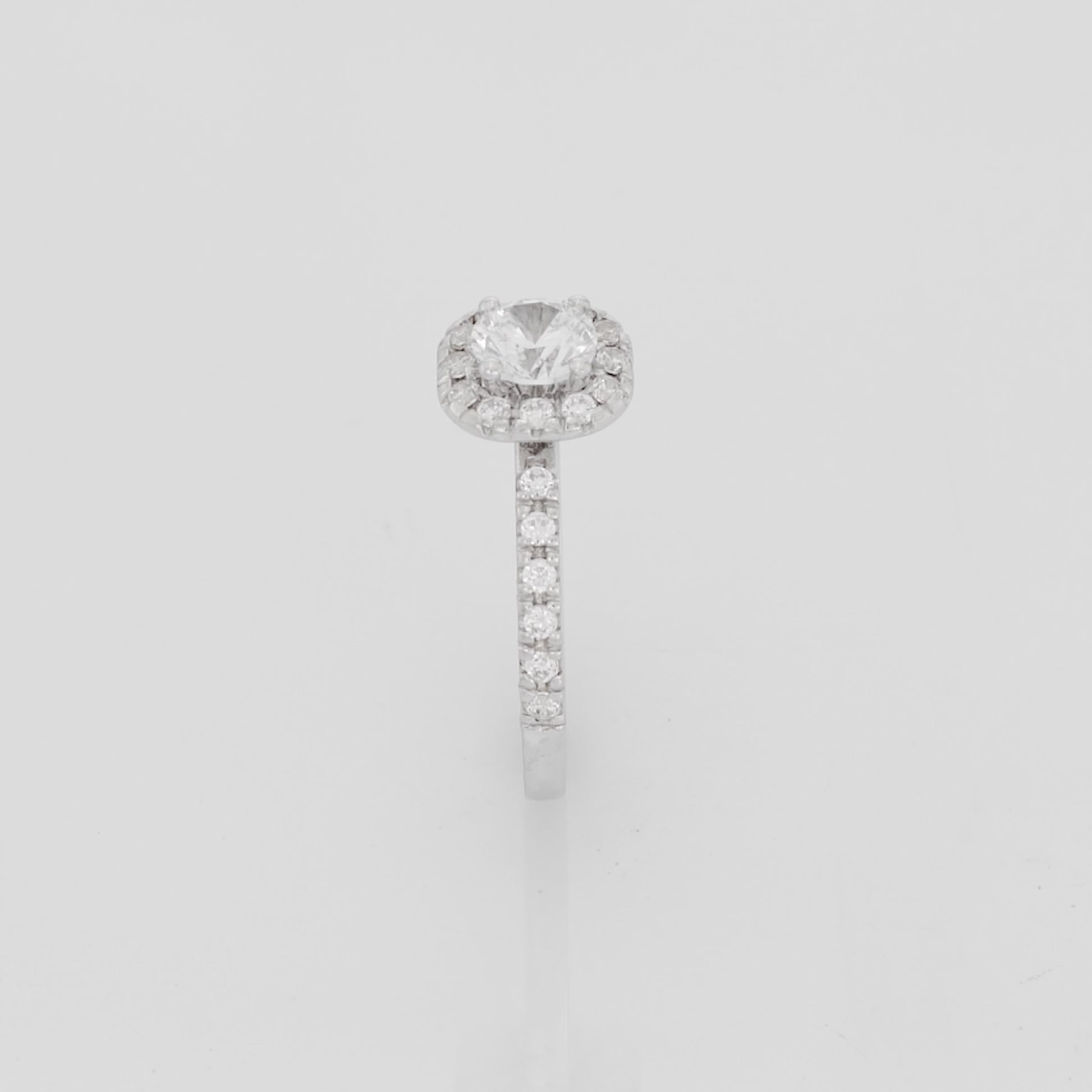 Tessa is an irresistible halo ring that will enchant you at first sight. The ring combines a traditional round center diamond with a brilliant halo of smaller diamonds that frame the center stone in the shape of a swirl. Together with the shimmering side diamonds that adorn the ring rail, the halo diamonds enhance the sparkle of the center diamond, giving Tessa an extraordinary charm that everyone will admire. The halo diamonds together with the side diamonds make up a total of approx. 0.42 Carat.