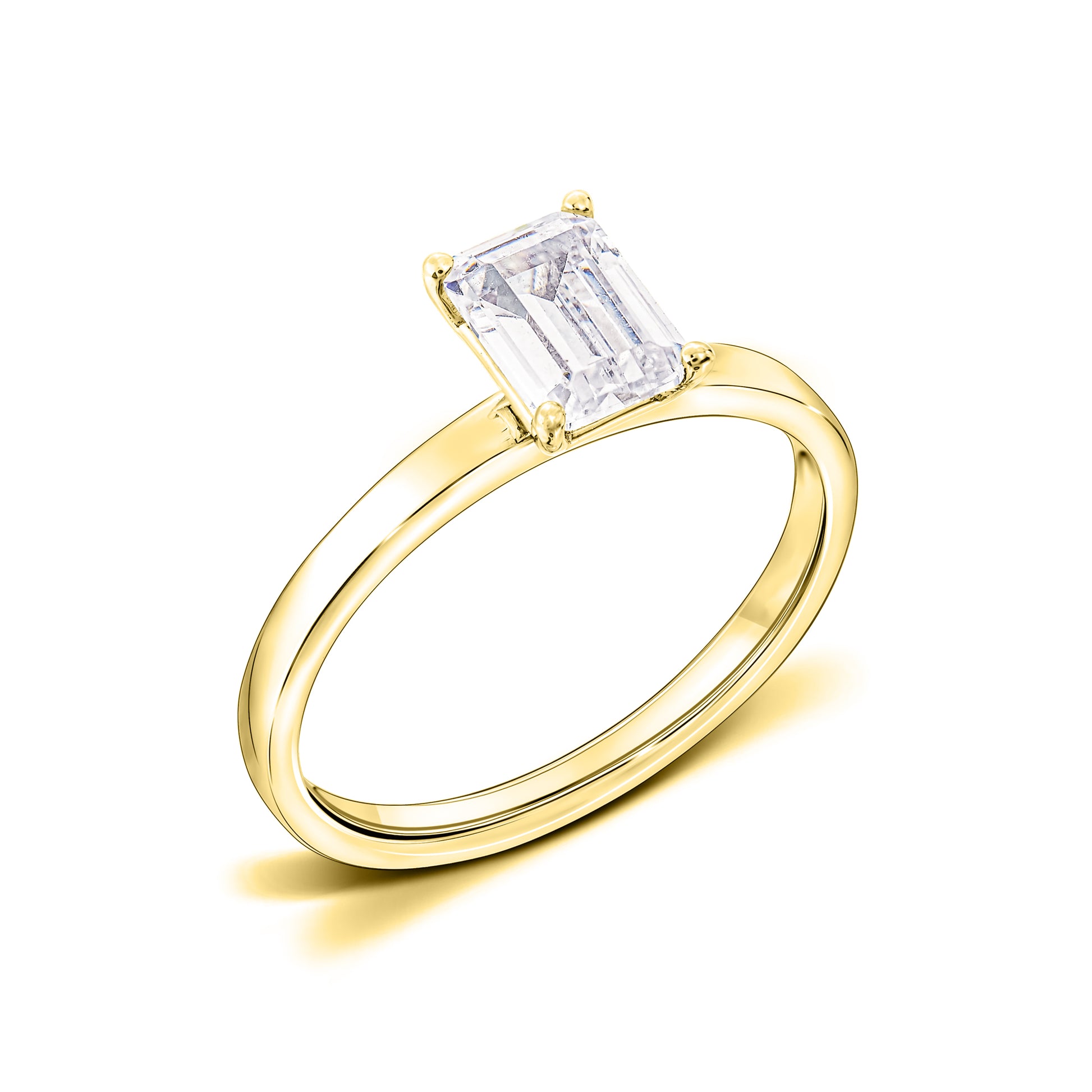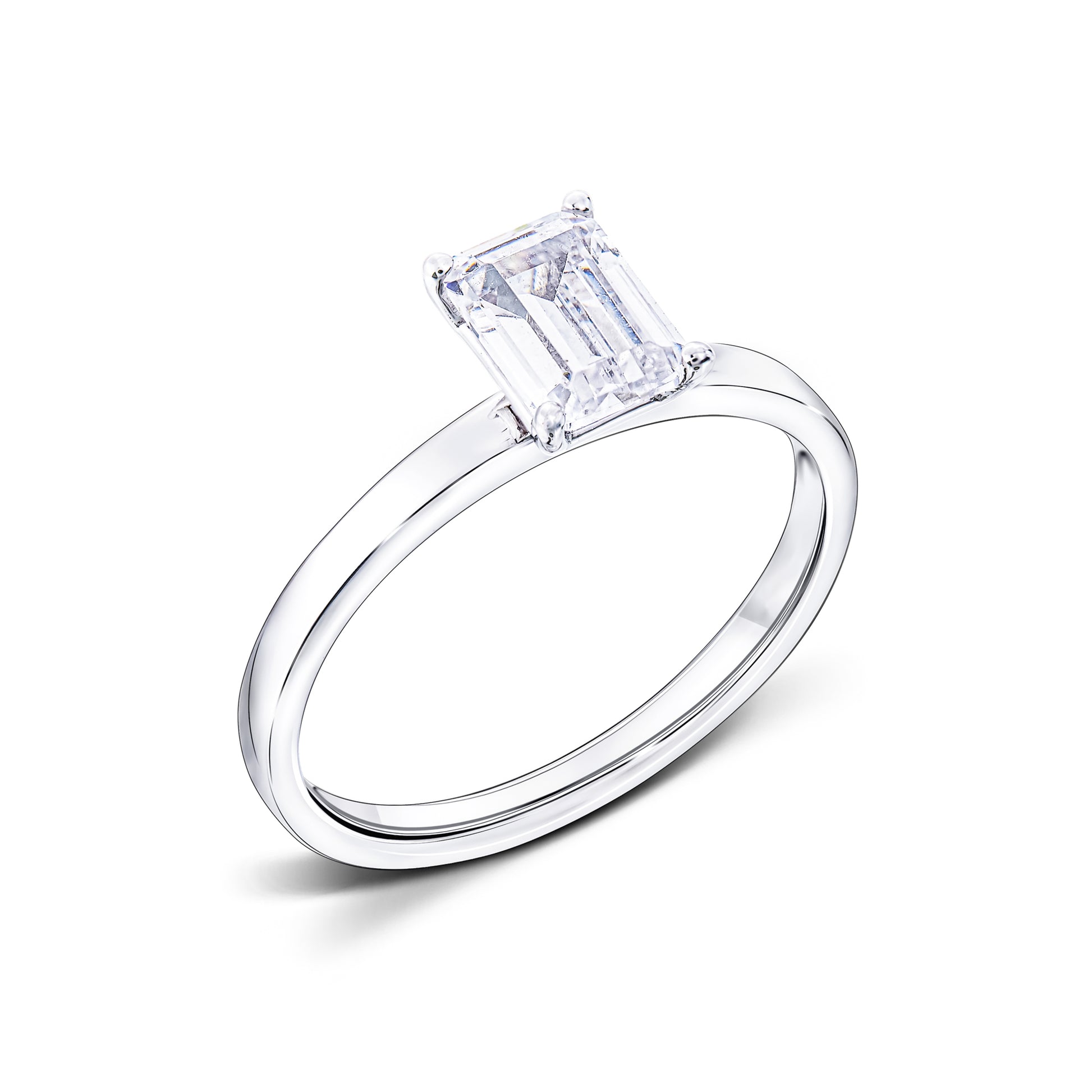 The solitaire ring Diana radiates simplicity and exceptional beauty. The ring features a glamorous emerald cut center diamond that is a firm favorite with its elegant shape. The diamond is encircled by 4 classic prongs, giving Diana a grand charm. With her simple design, she manages to embrace beauty from all angles in a spectacular way.