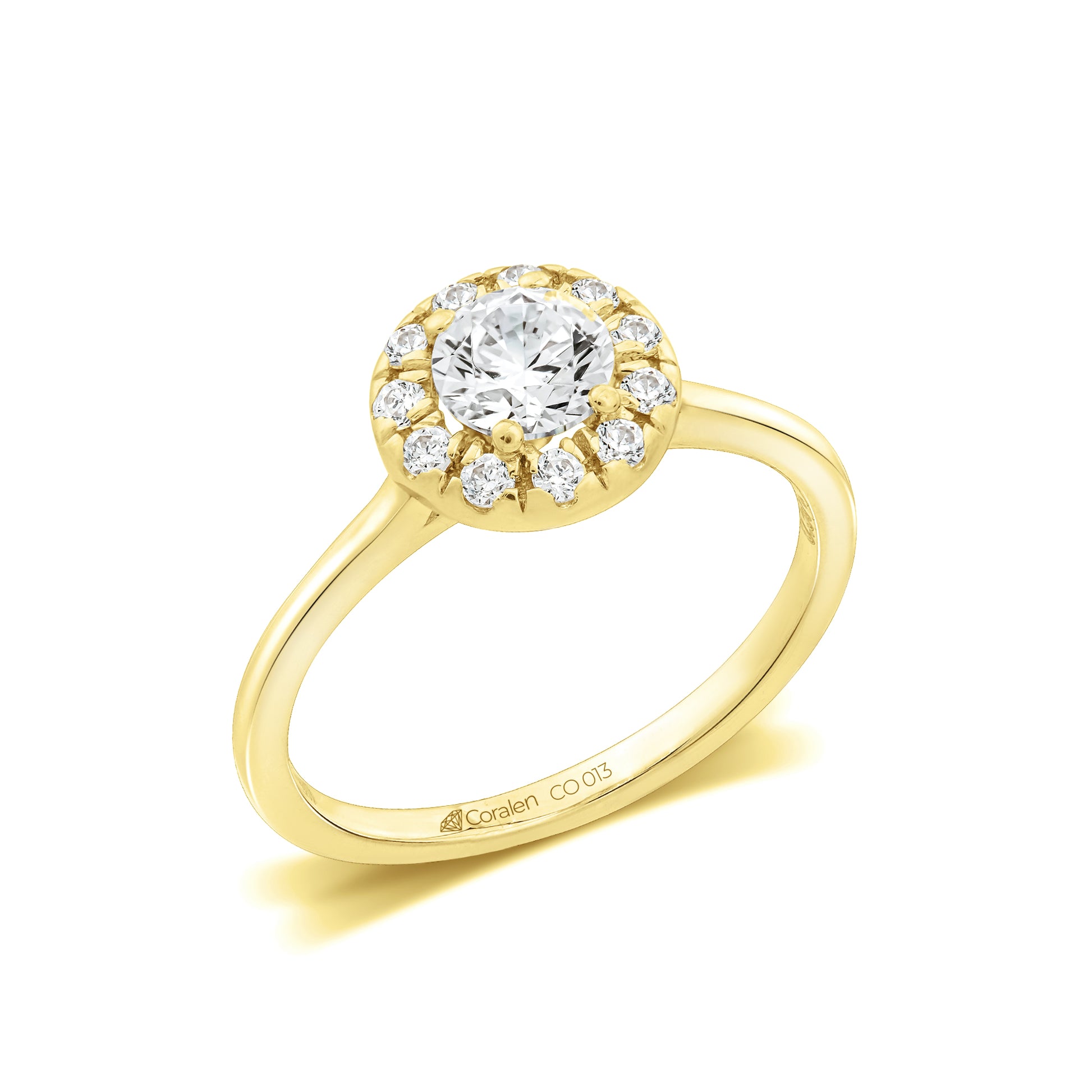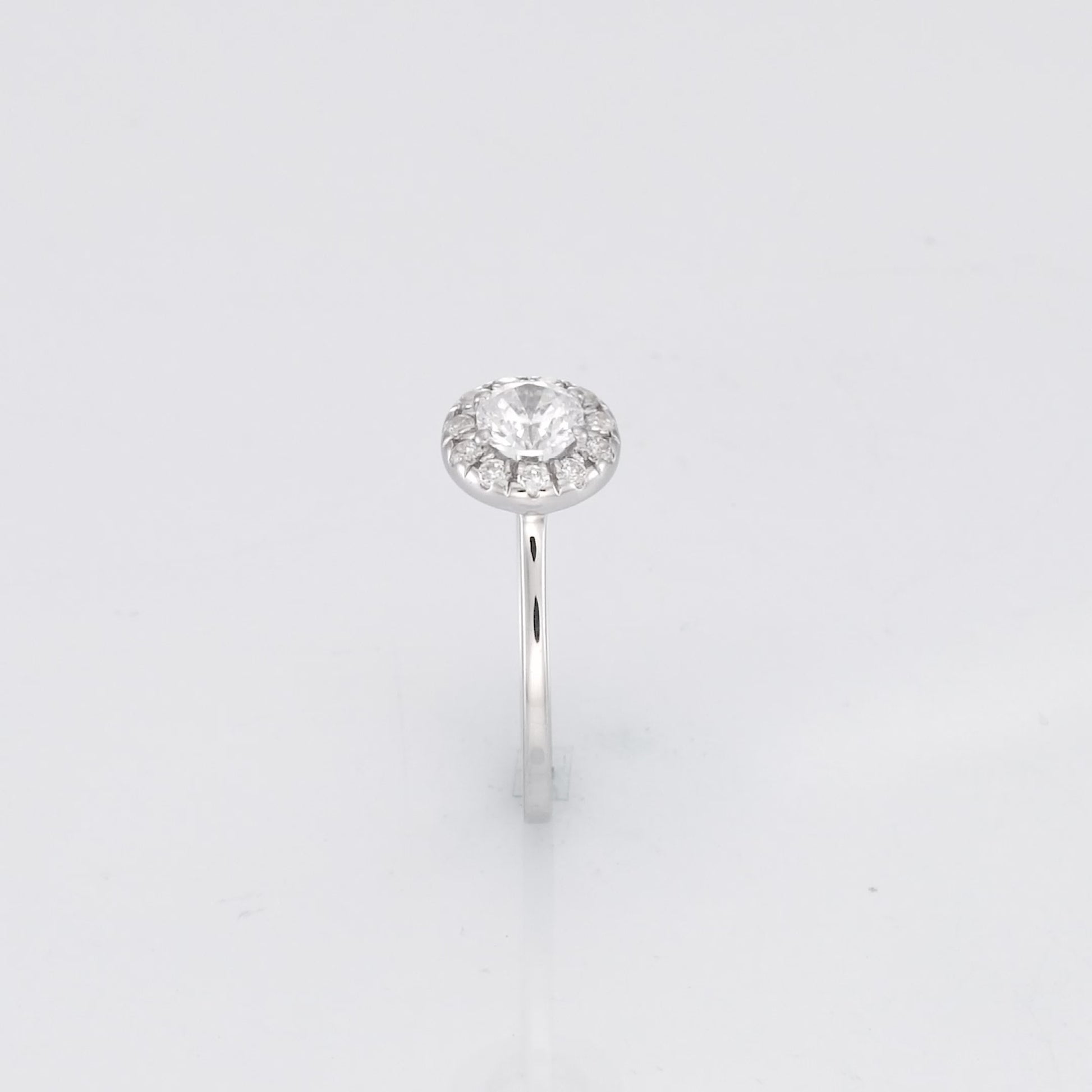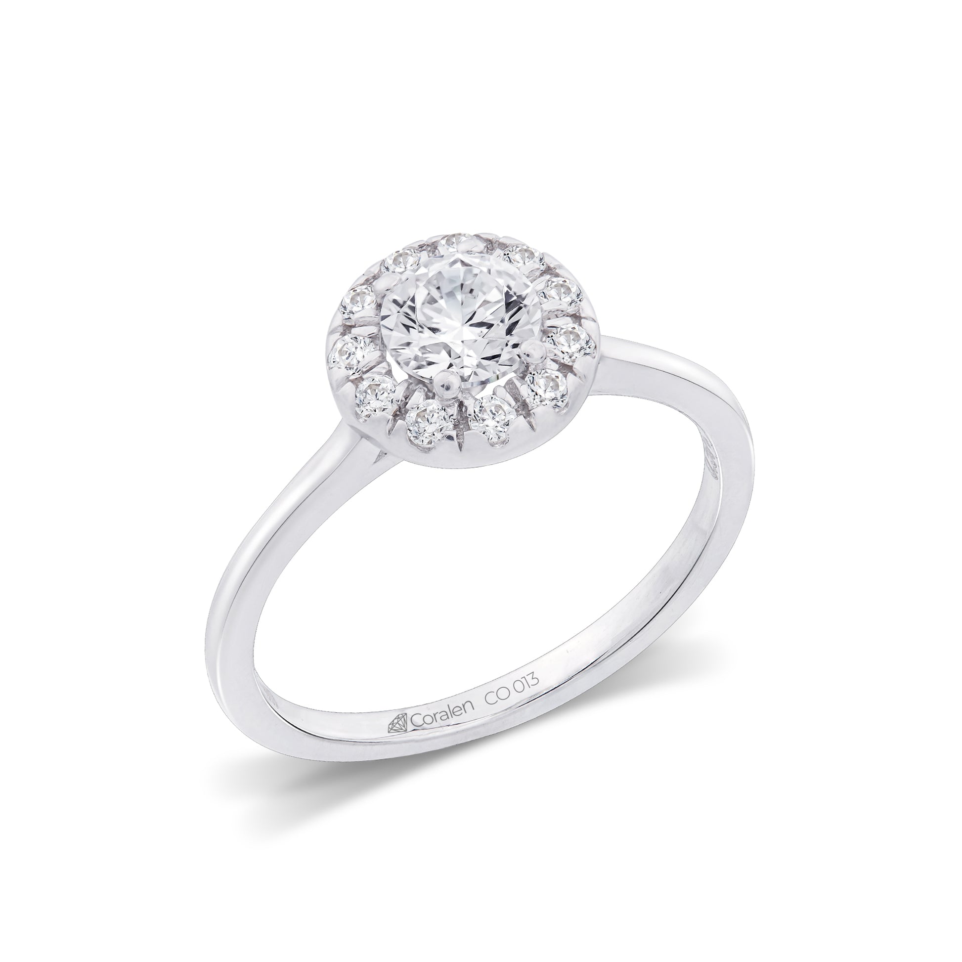 Olivia, an enchanting halo ring that enhances every woman's beauty. The central focal point of the ring is a magnificent round diamond, whose beauty and sparkle is enhanced by a subtle claw setting. The diamond immediately catches the eye and spreads a sparkling glow around it. To complete this already adorable ring, the center diamond is surrounded by an elegant round halo of sparkling diamonds, the total weight of which is approximately 0.20 Carat. This halo enhances the beauty of the center diamond and gives Olivia a wonderful dimension of added glamour.