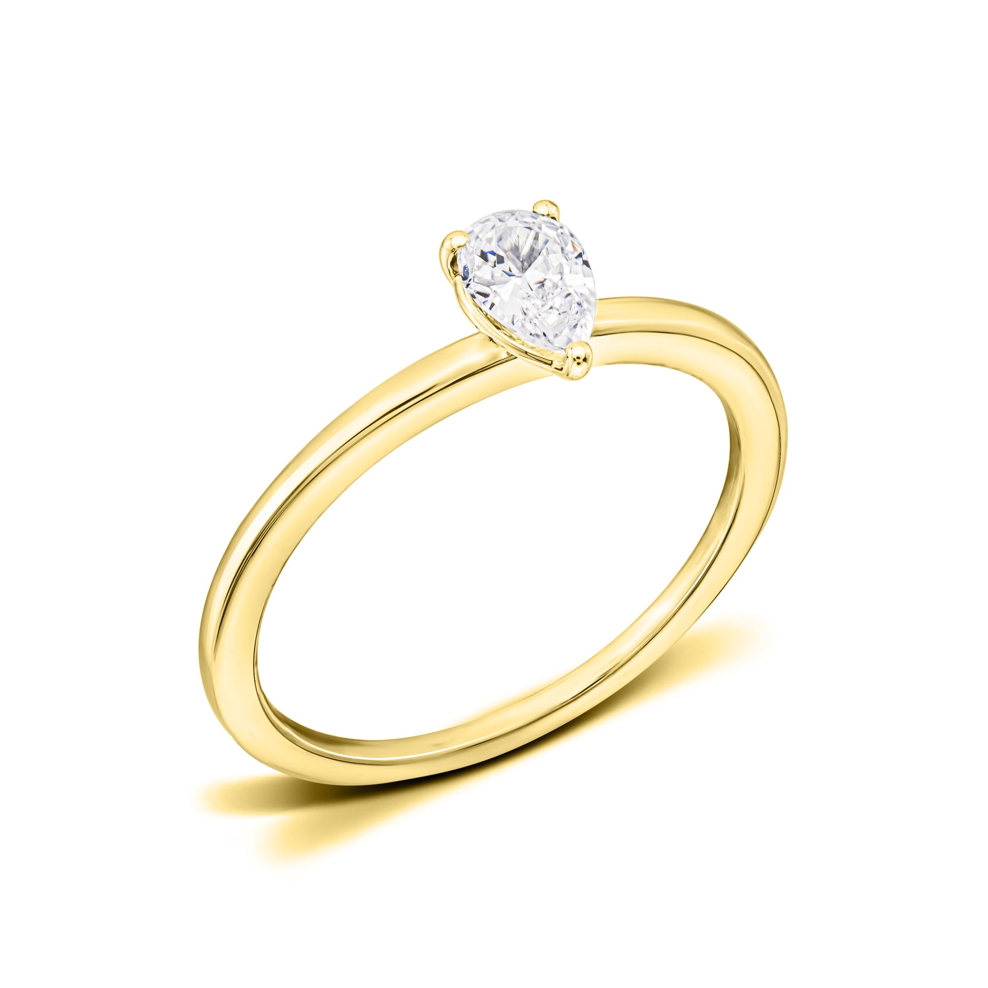 With a distinctive design that carries simplicity and unlimited elegance, the solitaire ring Clara is perfect for those who want to stand out with something unique and beautiful. The ring consists of a magical pear-cut center diamond with a point at one end and a wide base at the other end, a shape that gives a visual impression of length to the fingers. A beautiful and simple design with a unique diamond cut that will enchant and arouse the admiration of everyone .