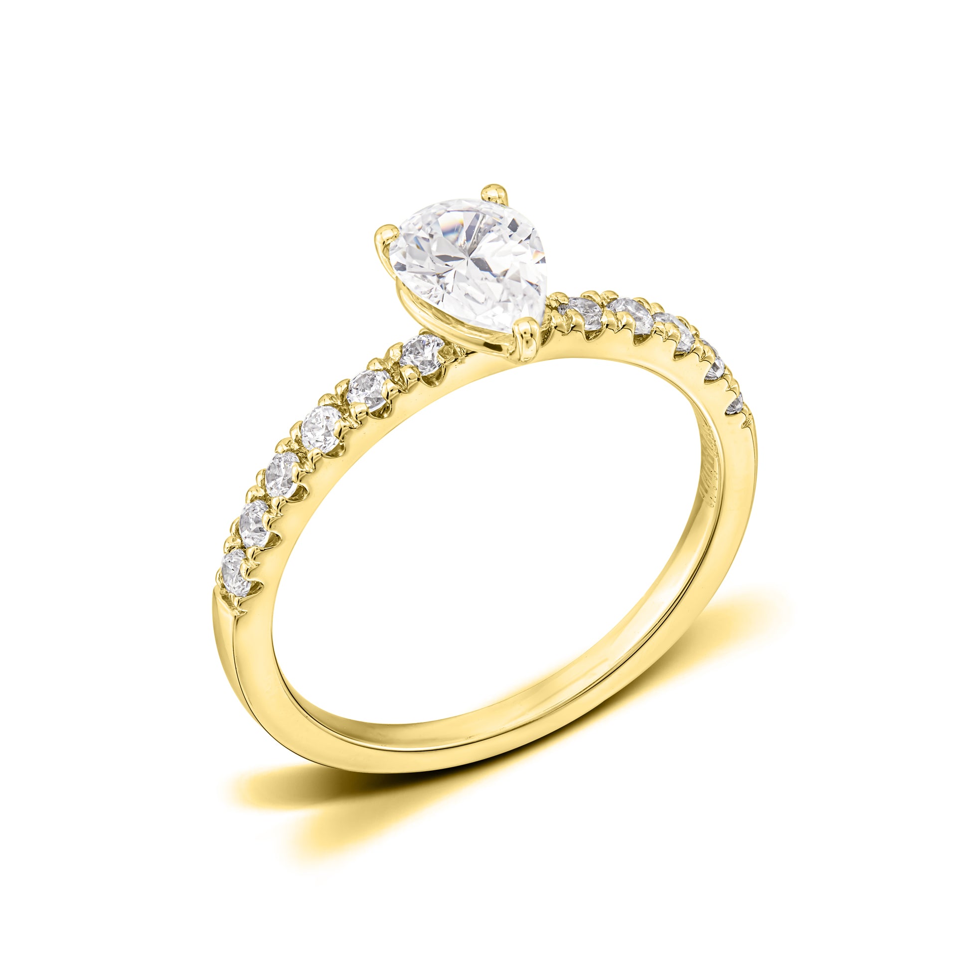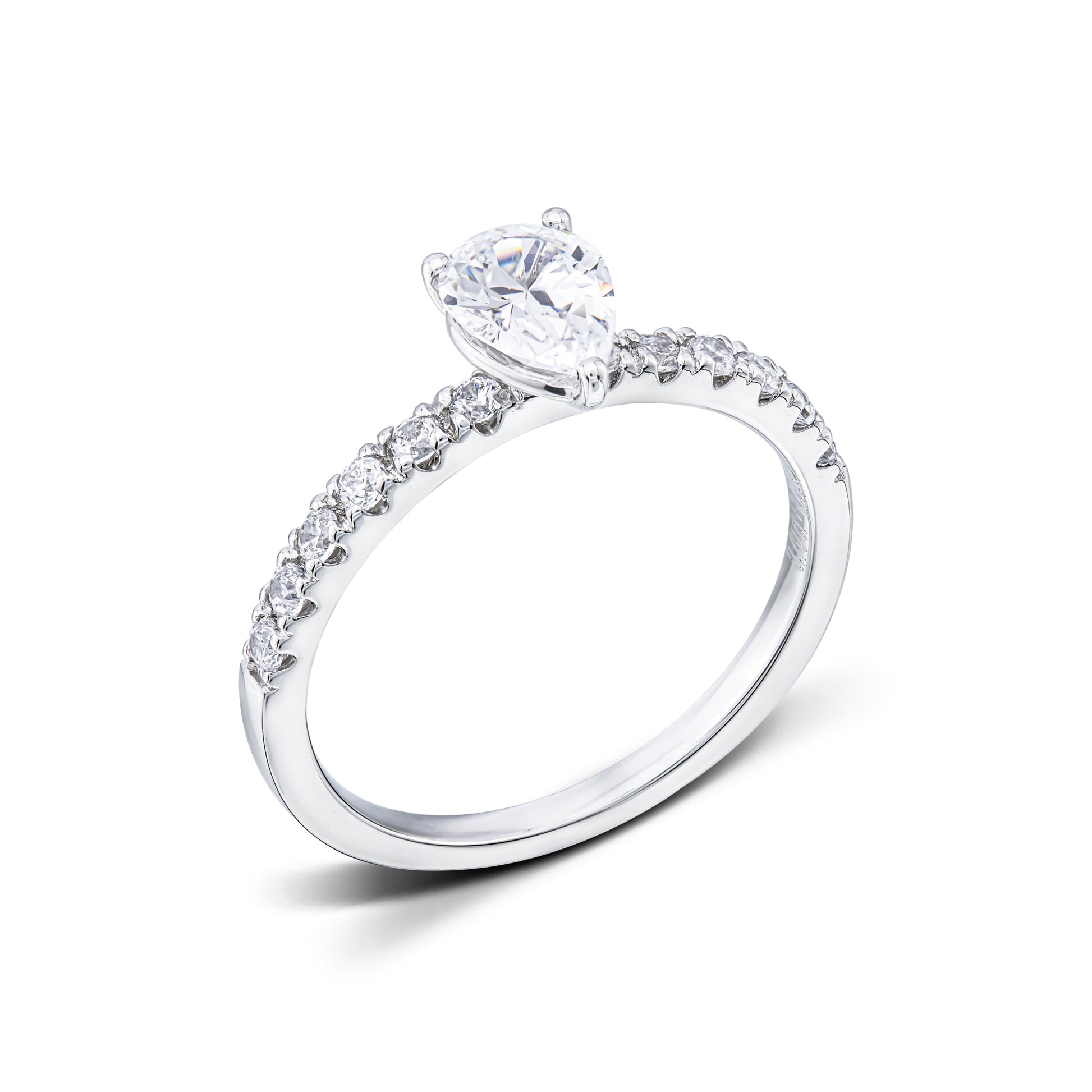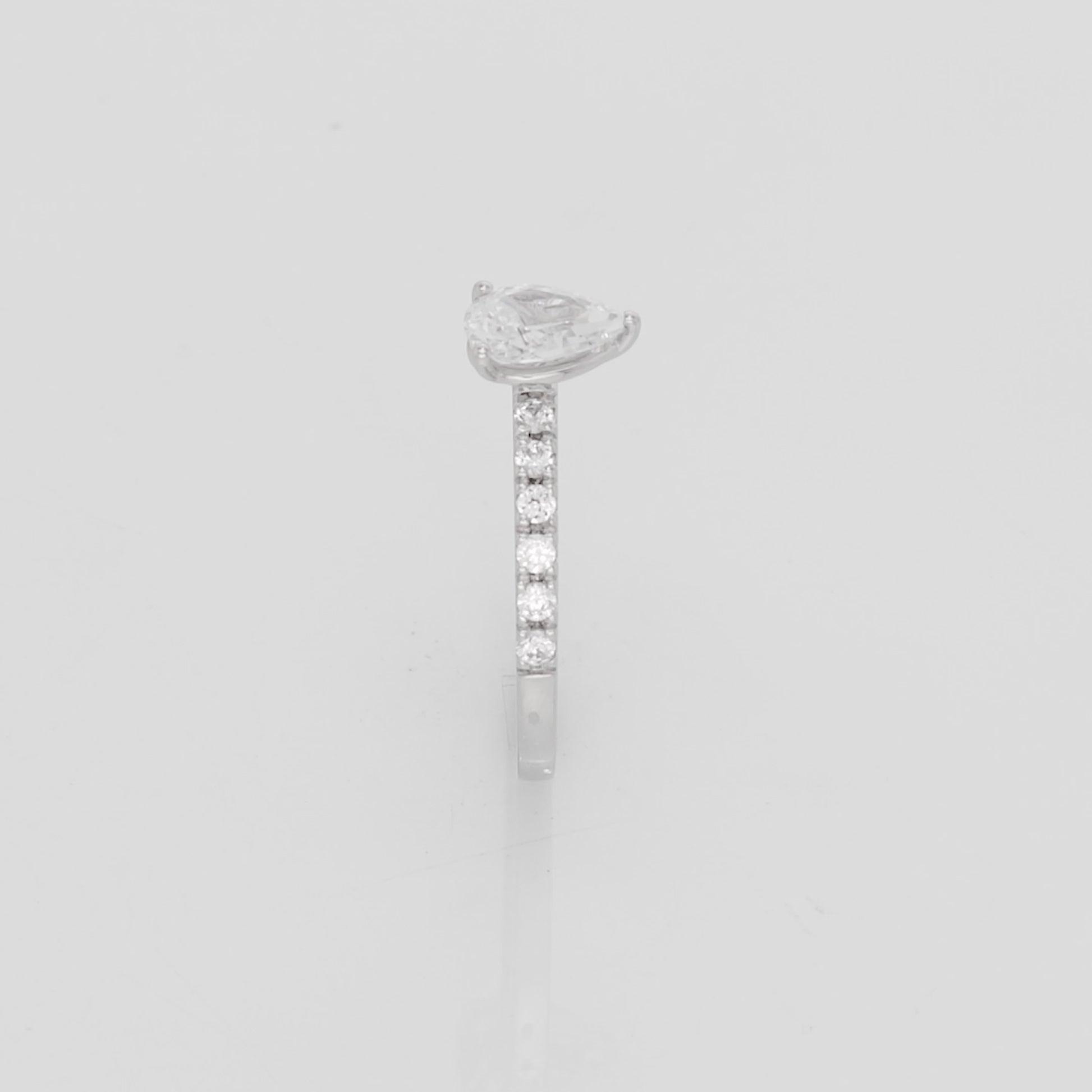 Melody is the side stone ring for those who want the extraordinary and admirable. What sets this ring apart is its unique pear-cut center diamond that radiates beauty from every angle. The sanding gives Melody a fairytale feel and makes it stand out. To further enhance the unique beauty of this ring, it has fine side stones that adorn the rail. These side stones have a total weight of approx. 0.25 Carat.