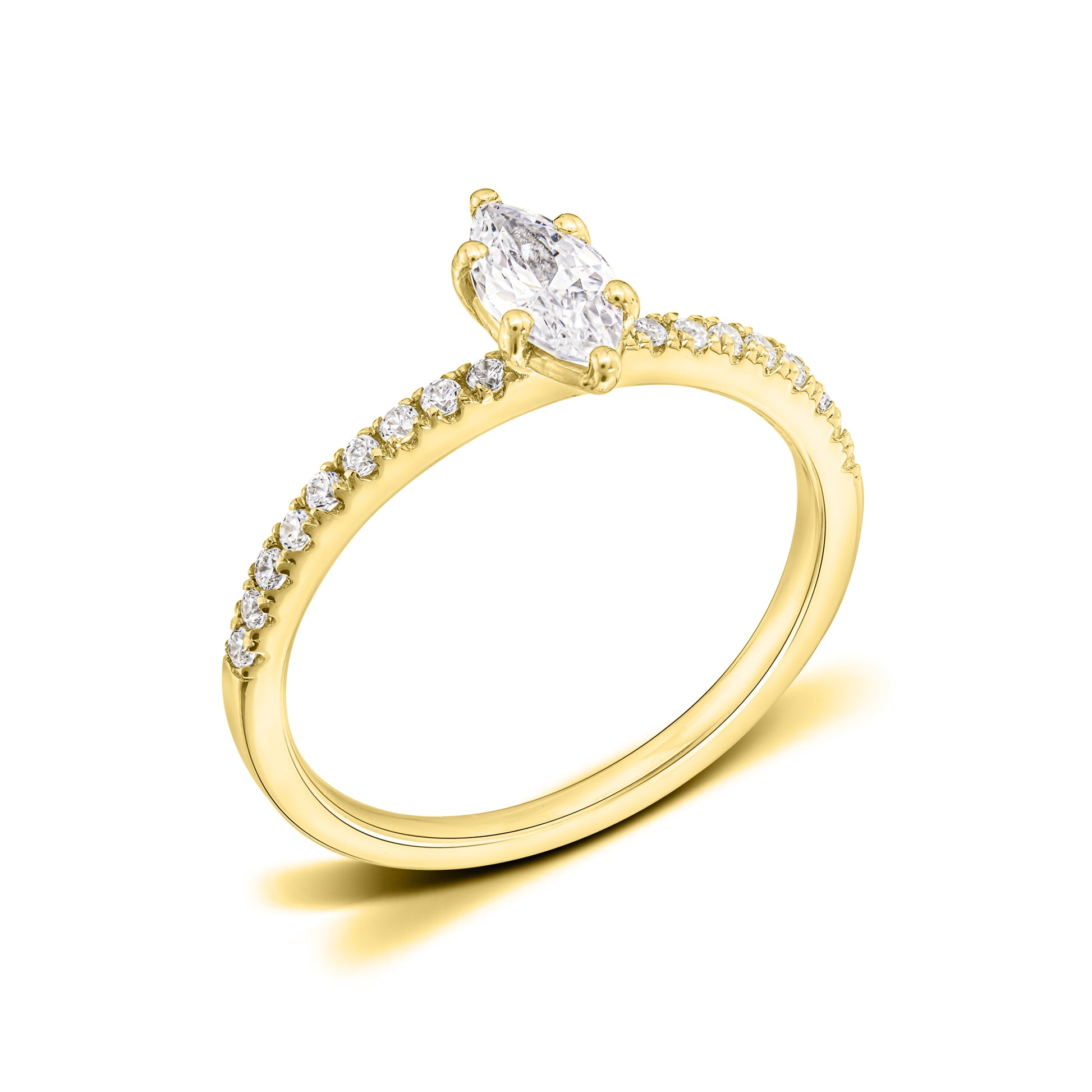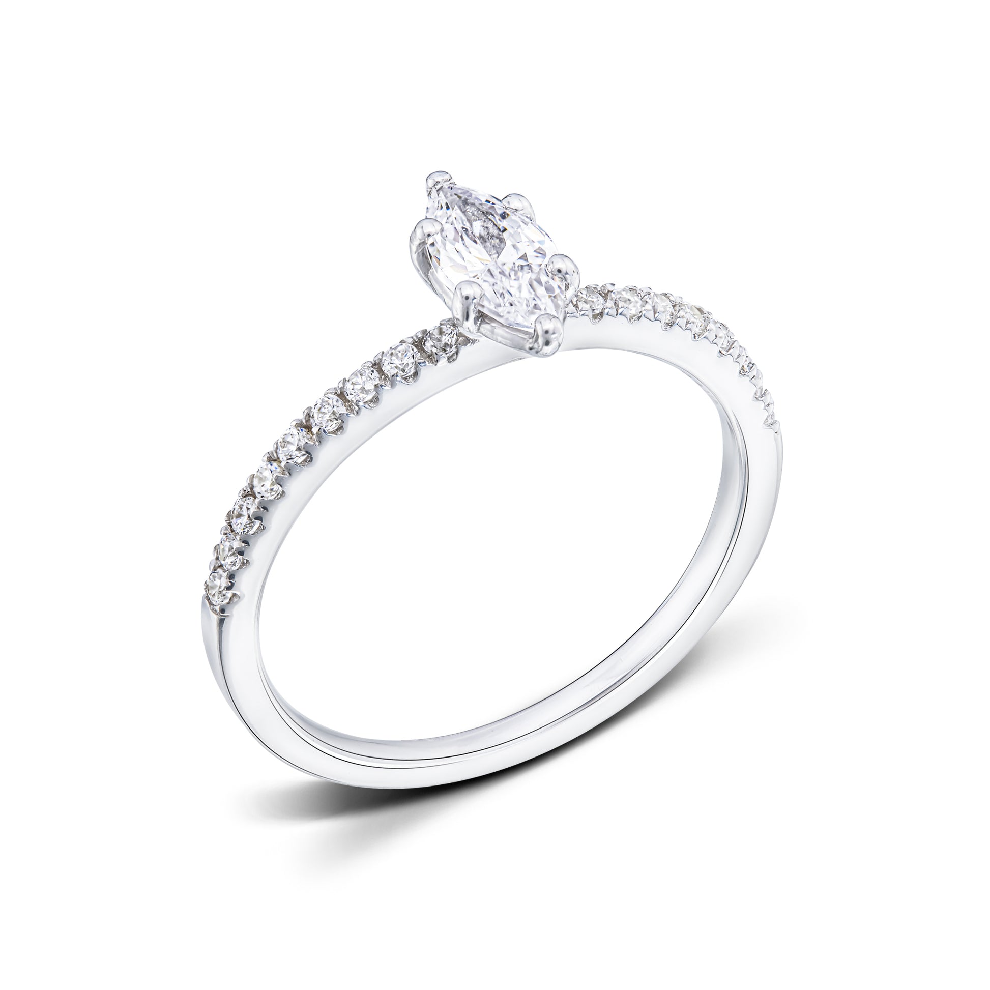This beautiful side stone ring is without a doubt an attention magnet. With its irresistible and extraordinary navel-cut center diamond, Viola does not compromise on either beauty or elegance. Along with the flattering side diamonds that adorn the rail, Viola exudes generous amounts of shimmer and glitter, something that grabs attention immediately. The side diamonds have a total weight of approx. 0.20 Carat.