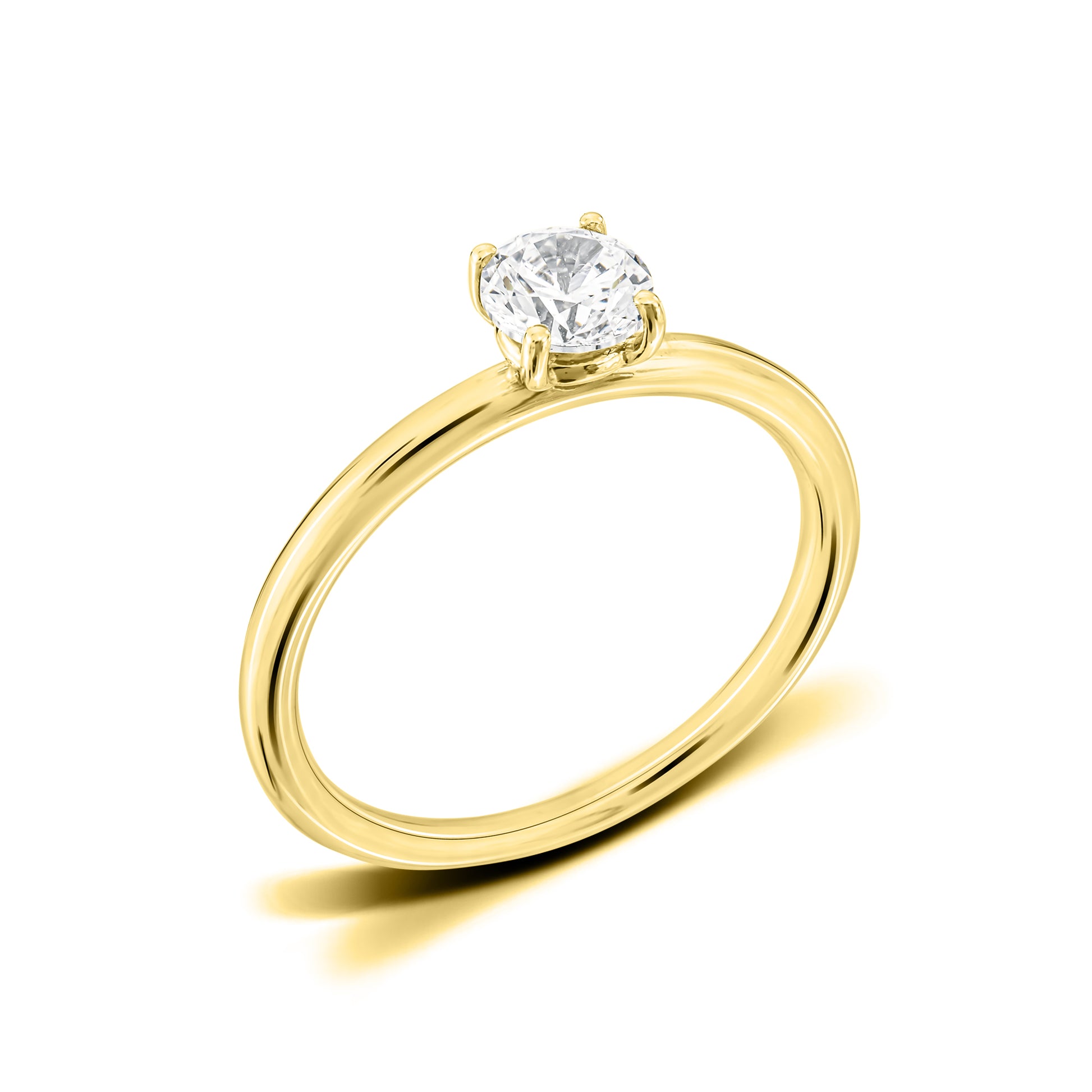 Amelia is a solitaire ring that exudes timeless elegance and irresistible beauty. With its four round claws and subtle platform underneath, Amelia offers a dream-like character. The ring's soft shine highlights the round-cut diamond in a fabulous way, shiny and flattering.