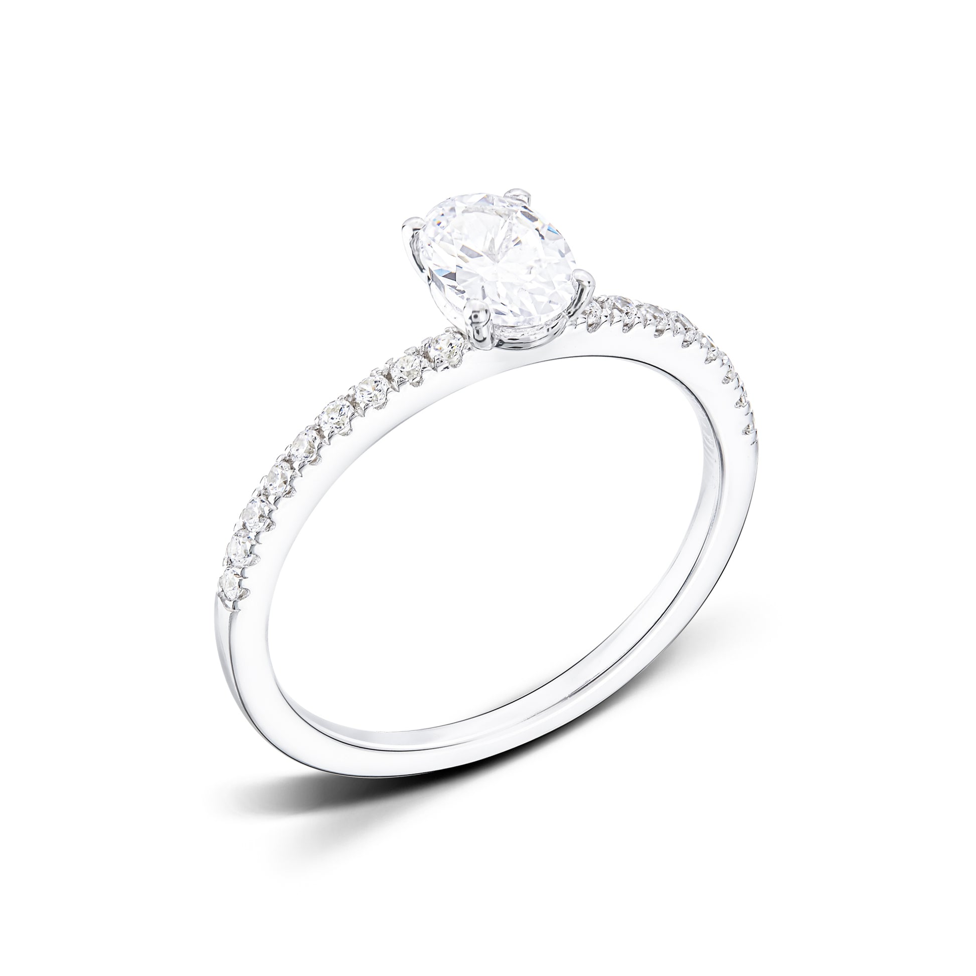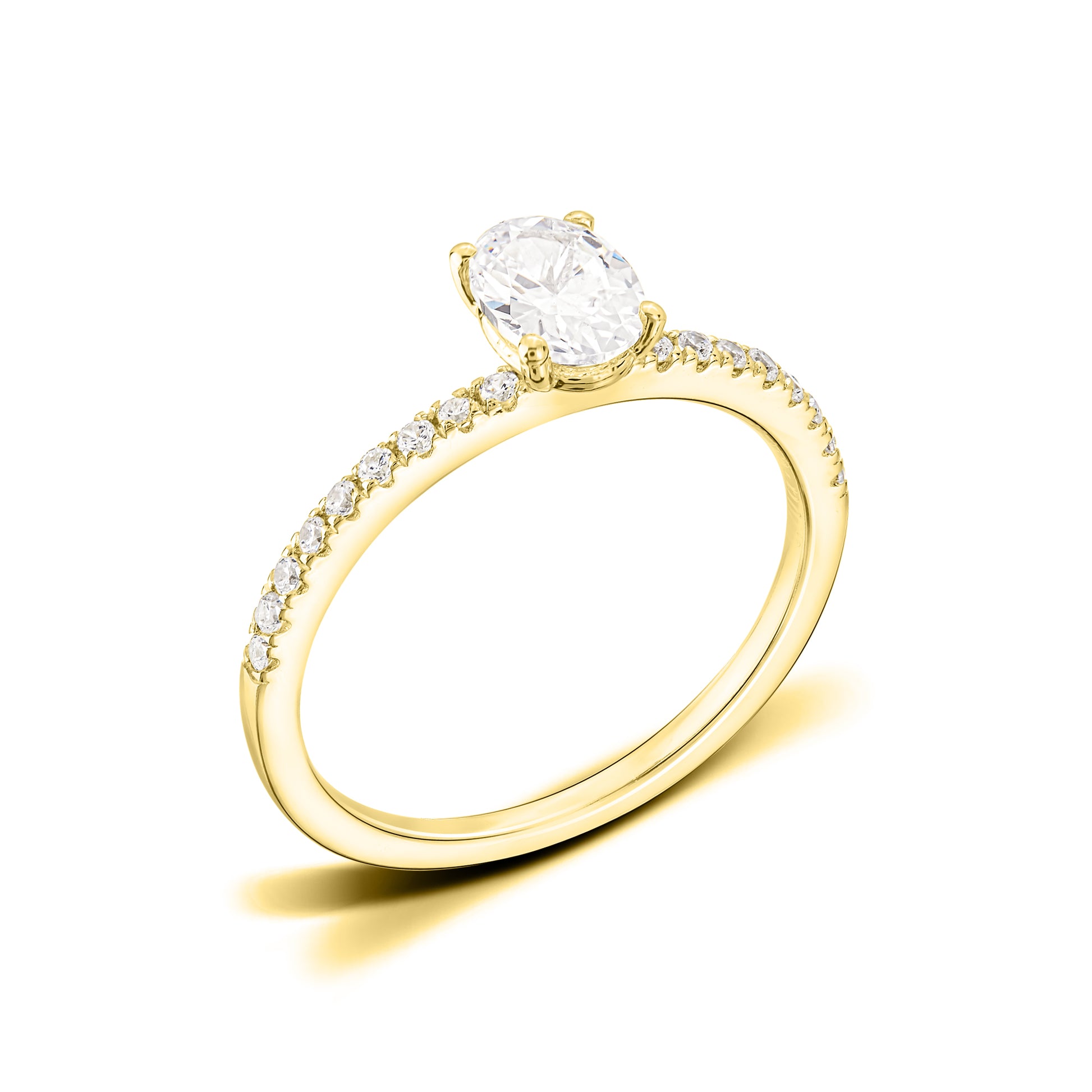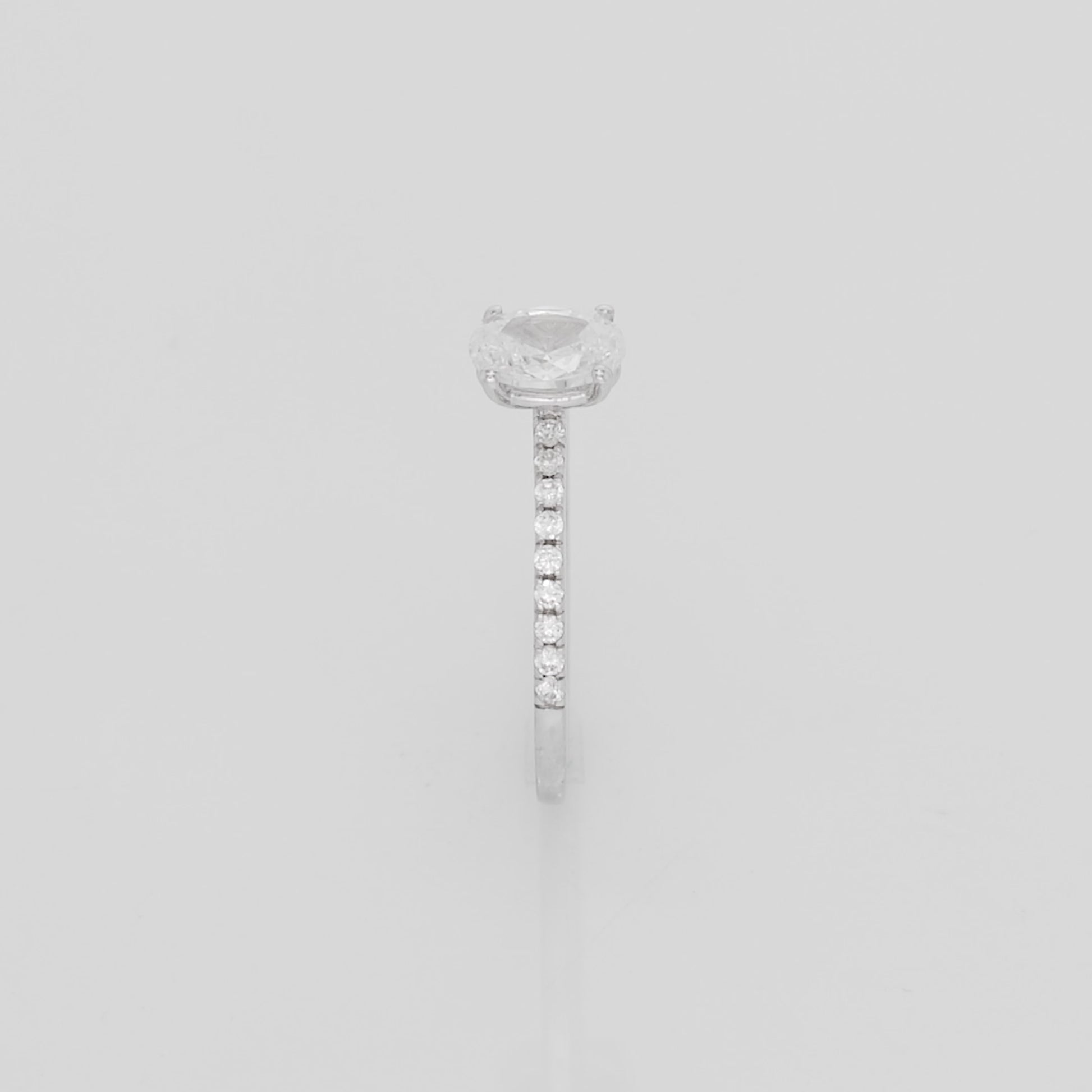 Claire is the side stone ring that will make you feel like royalty. The oval-cut center diamond with its exotic shape immediately catches attention like a magnet. The elegance and sophistication of the ring is enhanced by the side set diamonds that adorn the band. These shimmering side diamonds have a total weight of approx. 0.20 Carat and enhance the ring's shine irresistibly.