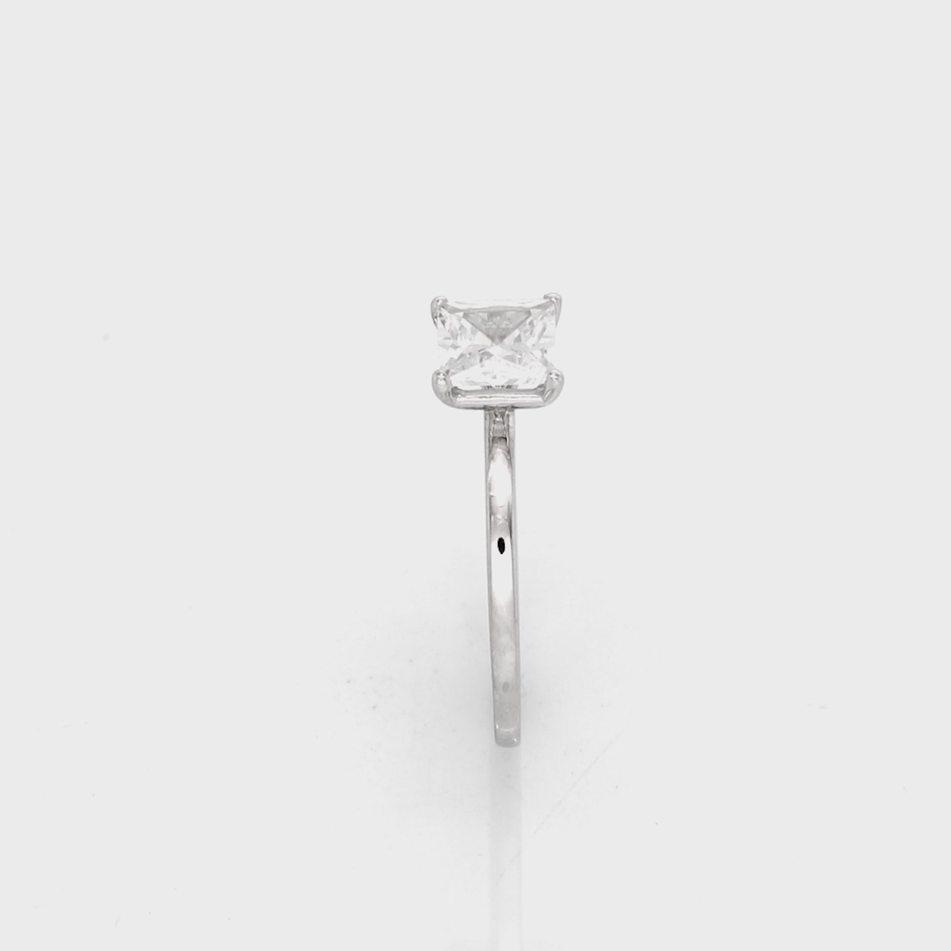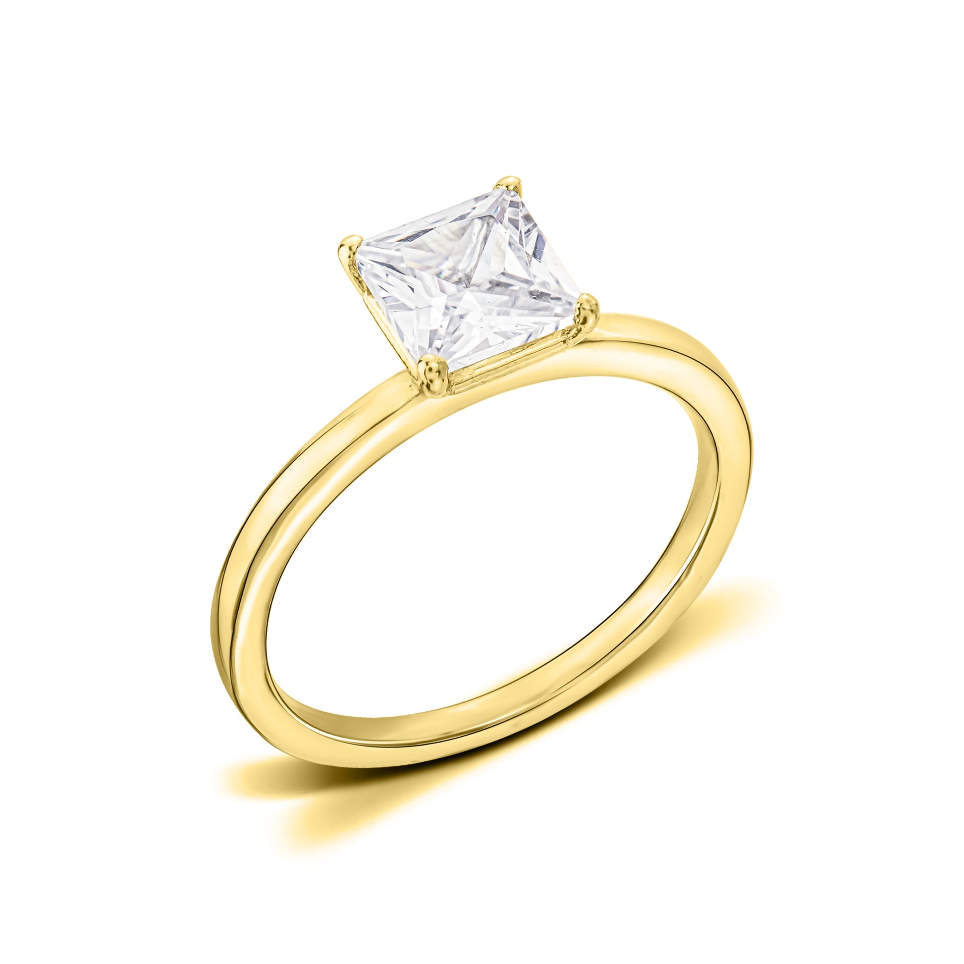 This solitaire ring with a princess cut diamond is a true symbol of elegant beauty and timeless style. The fact that the diamond is princess cut means that it has four smooth sides and a distinct square shape. With its characteristic sharp and pointed corners, Dalia magically captures the light and creates a spectacular sparkle that cannot be missed. The ring is characterized by a sophisticated simplicity that attracts attention and admiration, something that few other rings can match.