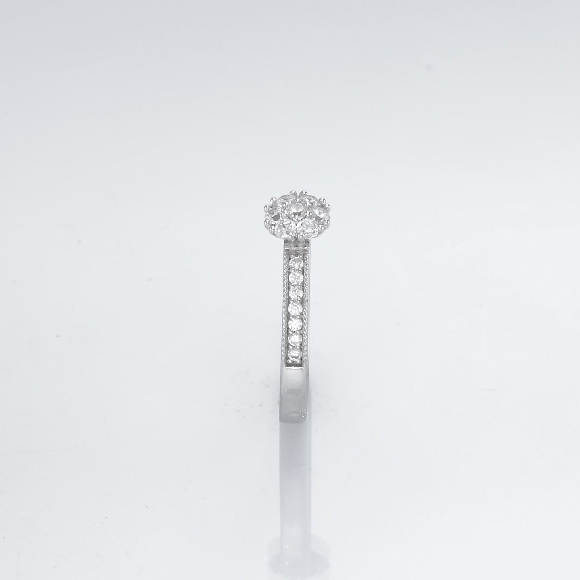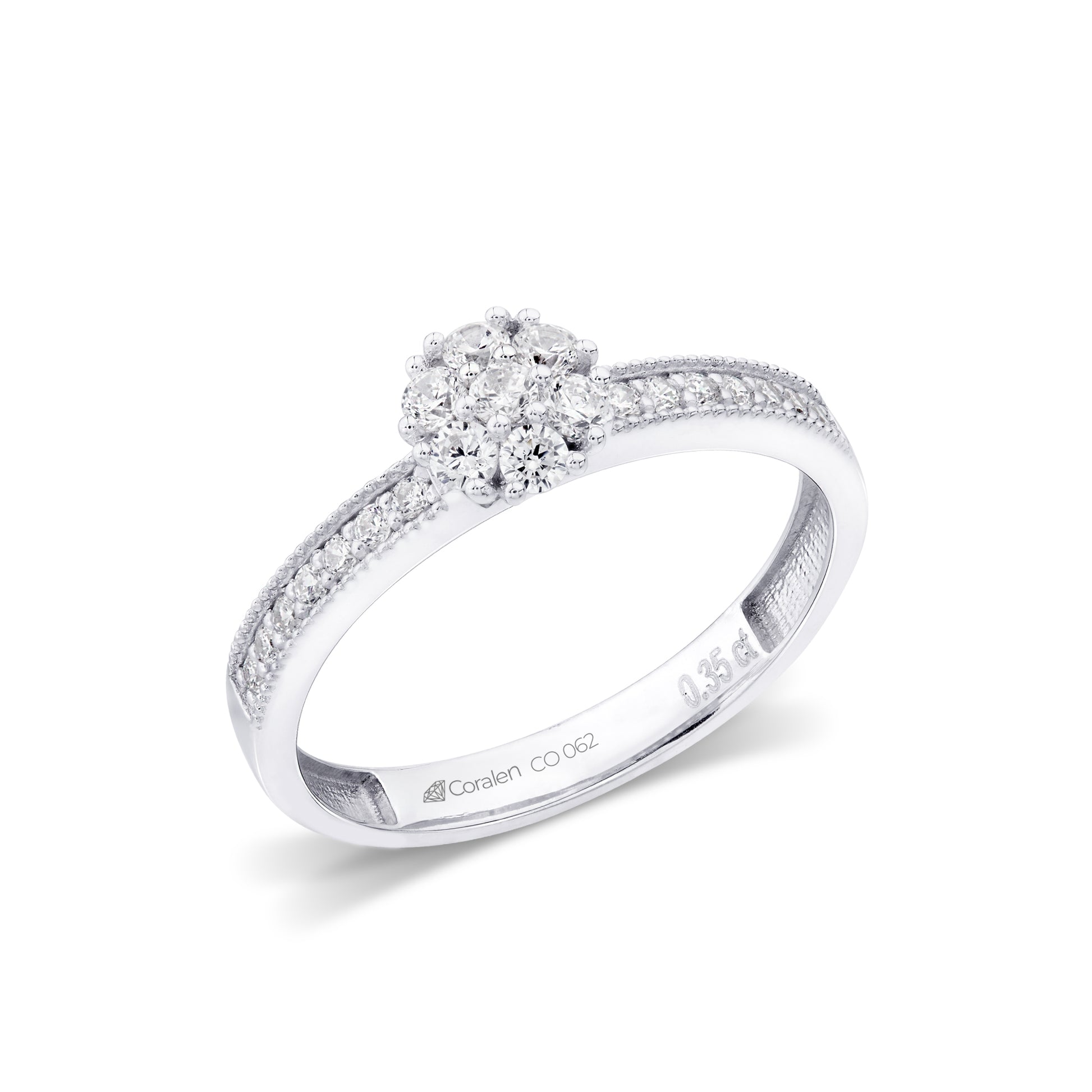 The halo ring Molly is an elegant and timeless creation for the sophisticated woman. This beautiful ring has a fantastic halo of smaller diamonds that adorn the crown like a flower that stands at the center of all attention. With its diamond-encrusted rail, Molly exudes a luxurious feel that is undoubtedly superior. The halo diamonds have a total of approx. 0.21 Carat. The side diamonds are a total of approx. 0.14 Carat.