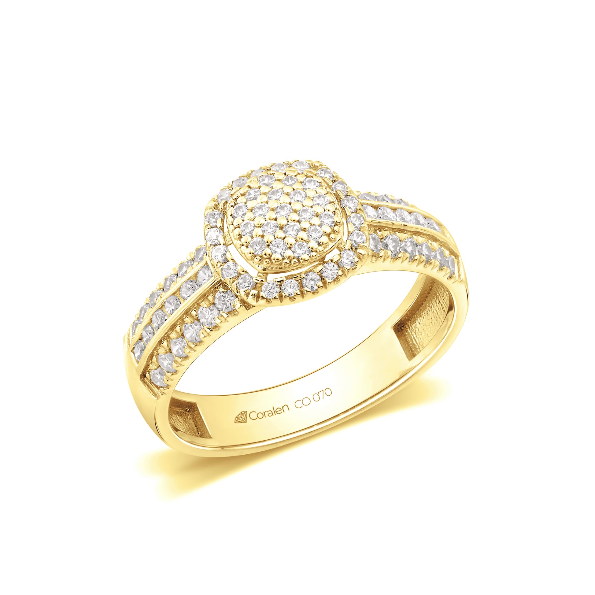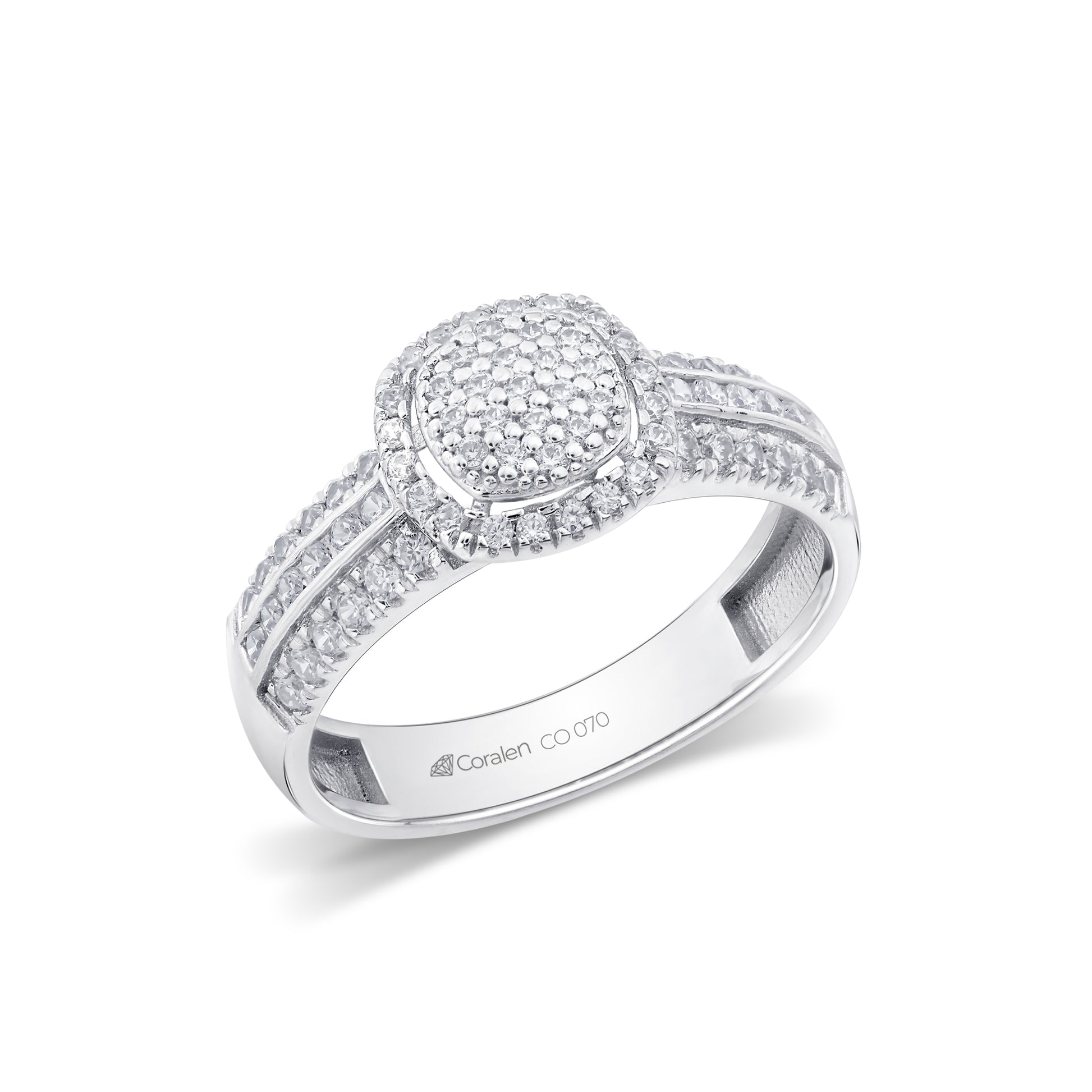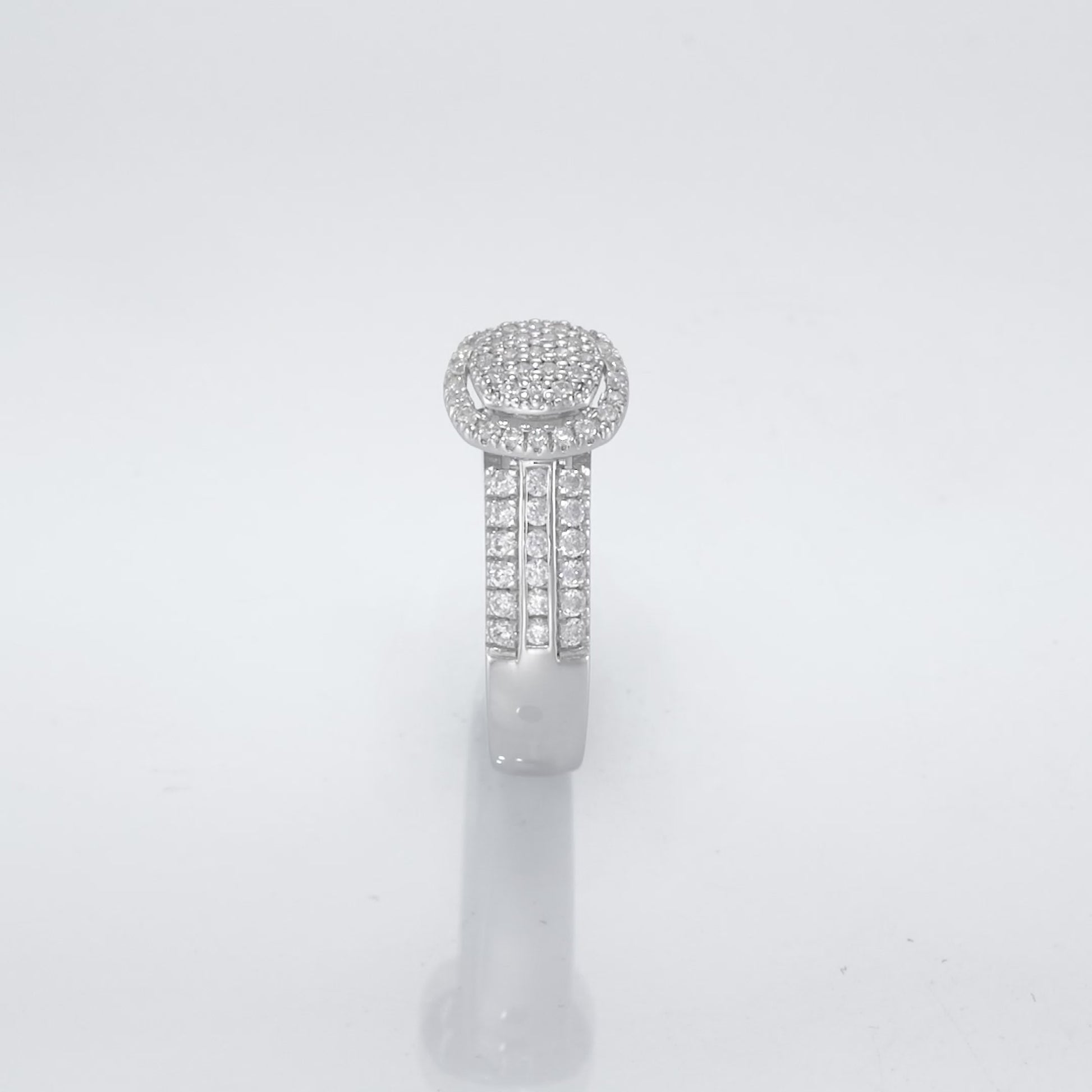 The halo ring Lory adorns your finger with magnificent and enchanting shine. Its shimmering crown is surrounded by not just 2, but 3 rows of halos, creating incredible dimensions that generously spread light over the entire hand. Lory's rail is also decorated with 3 rows of side stones where the diamonds in the outermost rows are surrounded by claw setting and the middle ones by channel setting. The diamonds have a total weight of approx. 0.70 Carat.