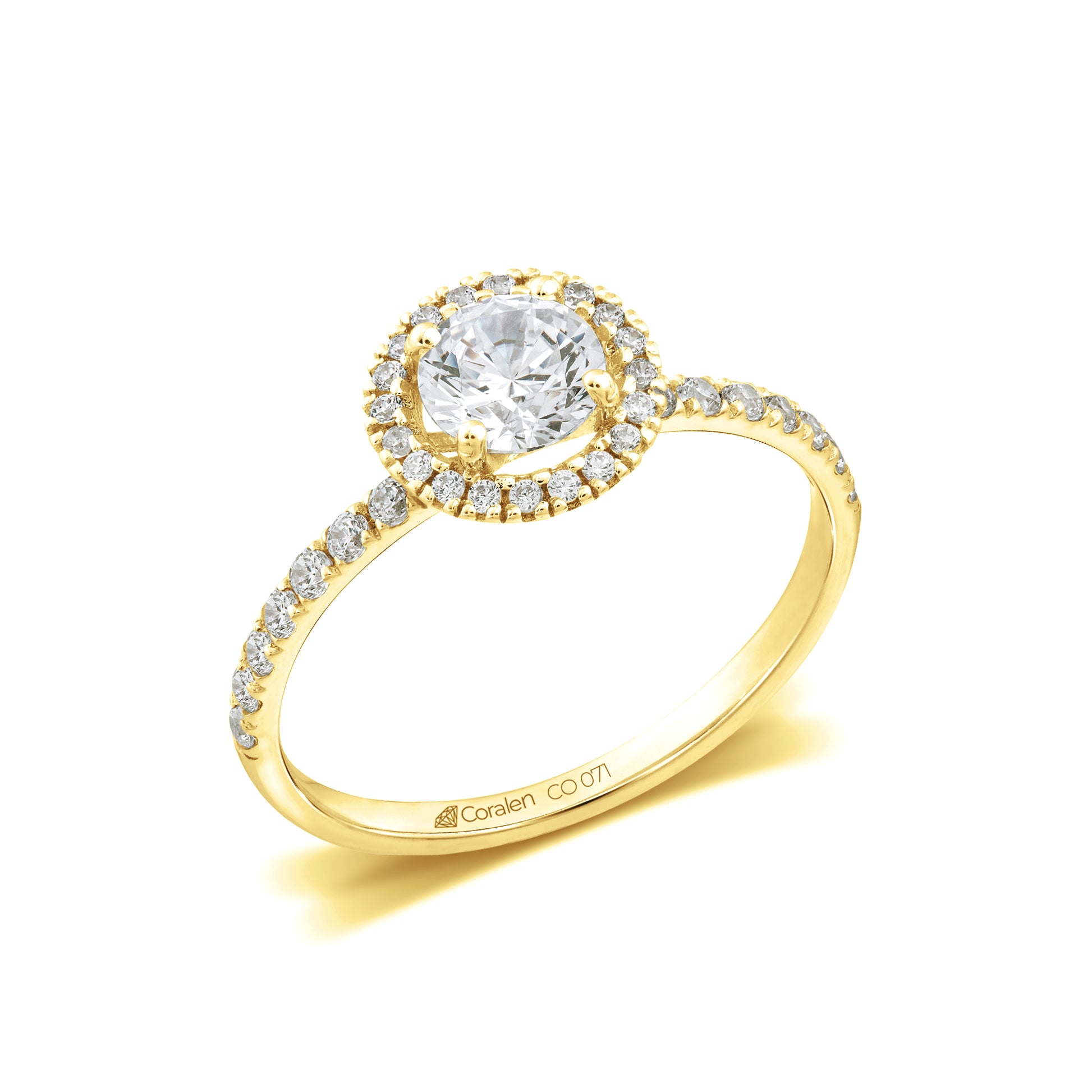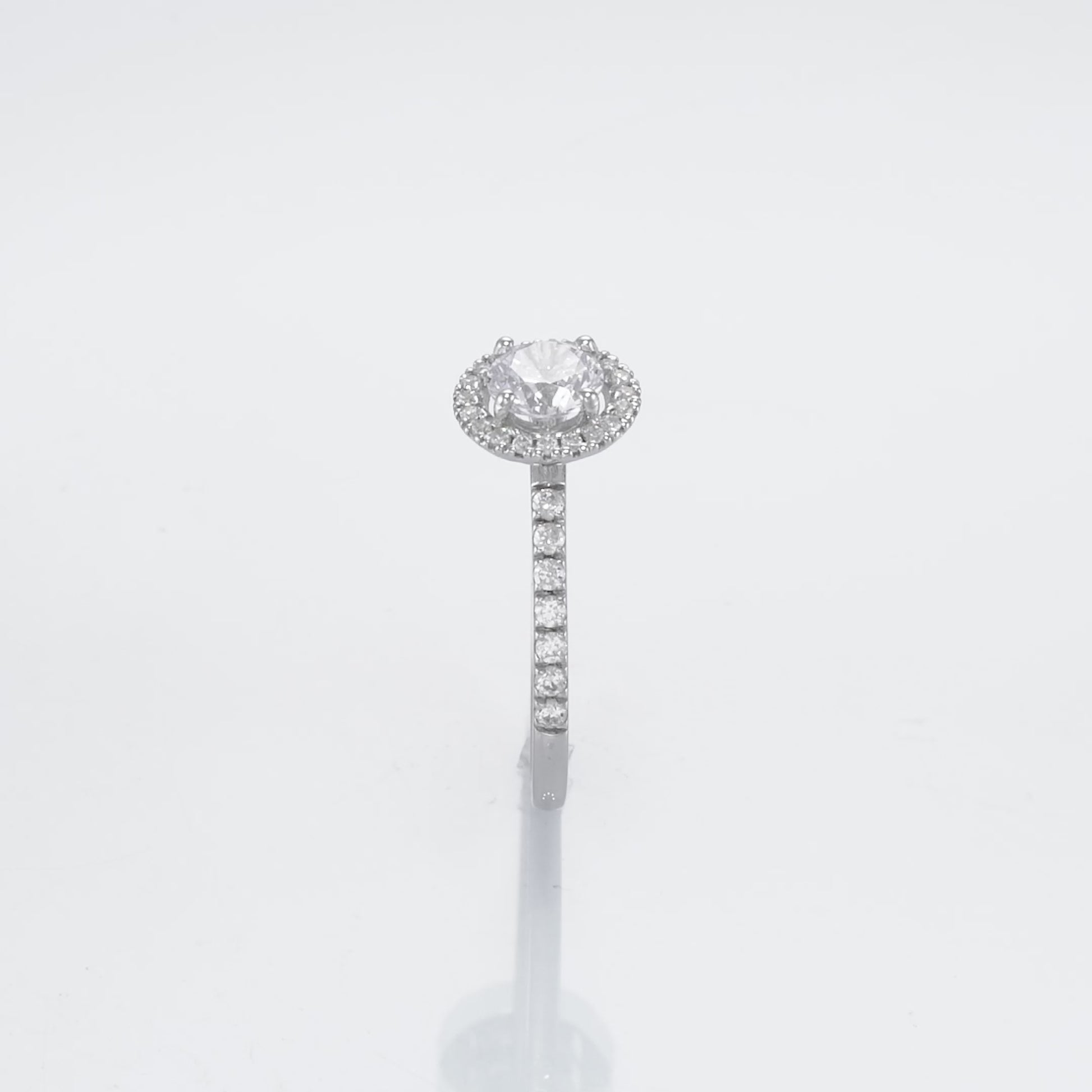 The enchanting Emelie halo ring is a masterpiece that exudes timeless elegance and superior beauty. Emelie is adorned with a classic round center diamond surrounded by 4 elegant prongs. What makes this ring extra special is the enchanting halo that surrounds the center diamond. With the help of several smaller diamonds that frame the center diamond, an impressive illusion of a larger stone is created. To enhance the ring's luminous power, the narrow rail is also adorned with beautiful side diamonds. A unique and startling dimension that will arouse admiration and delight in all who look at Emelie. The halo diamonds and side diamonds together have a total weight of approx. 0.34 Carat.