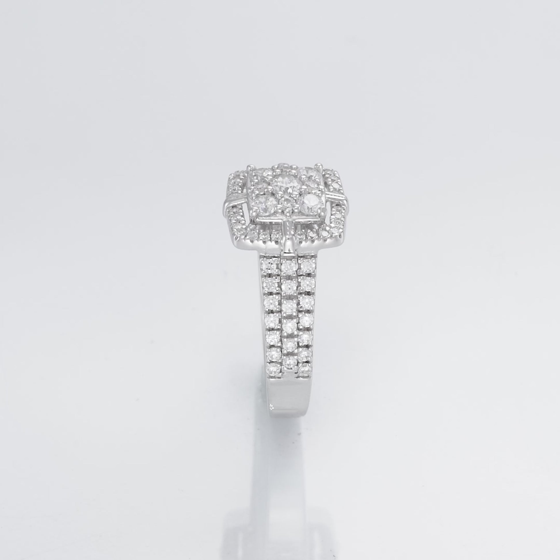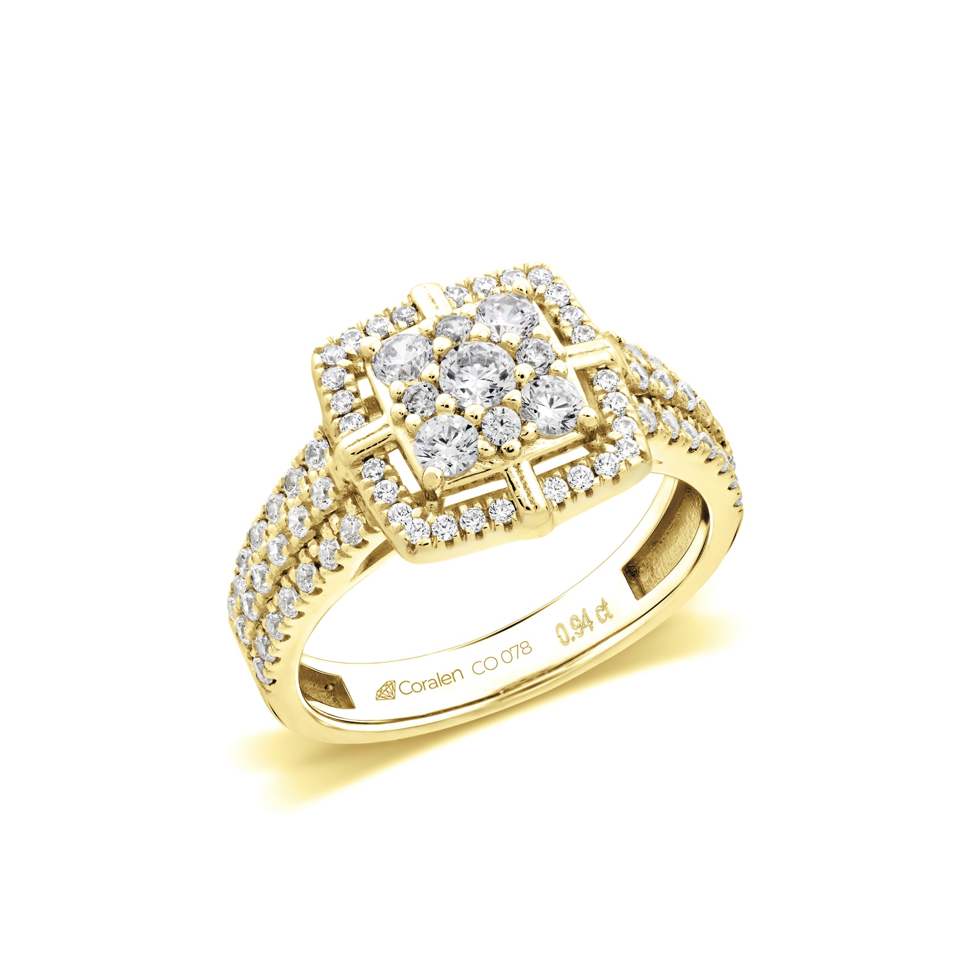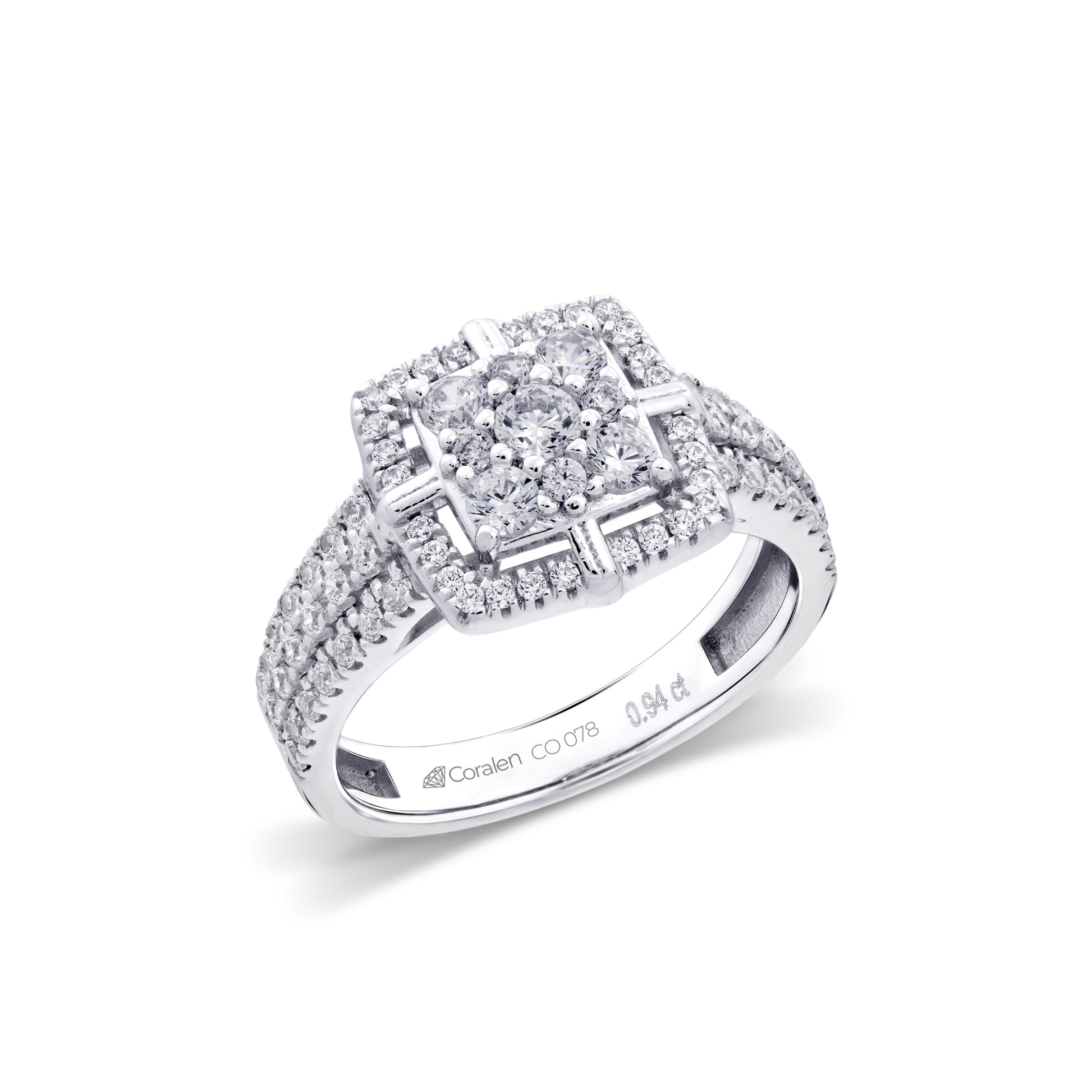 Allison is an elegant and admirable halo ring that is sure to turn heads. The ring is designed with an outer and inner halo that both form a square frame. The irresistible halo gives the ring an extraordinary look that no other ring can match. In addition to this shine, Allison's rail is also adorned with 3 rows of side diamonds that generously enhance the shimmer and glitter. The diamonds make up a total of approx. 1.00 Carat.