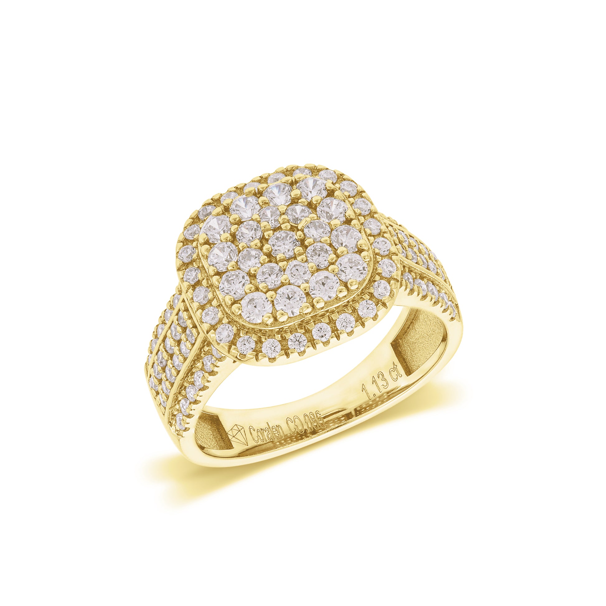 The halo ring Linda is a brilliant harmony of diamonds. This beautiful ring combines elegance and seductive shimmer in a radiant composition, where the crown is filled with shimmering diamonds arranged in several rows of halos. In addition, Linda's rail is adorned with 4 rows of side diamonds. An extraordinary beauty that will captivate and enchant at every moment. The diamonds make up a total of approx. 1.13 carats.