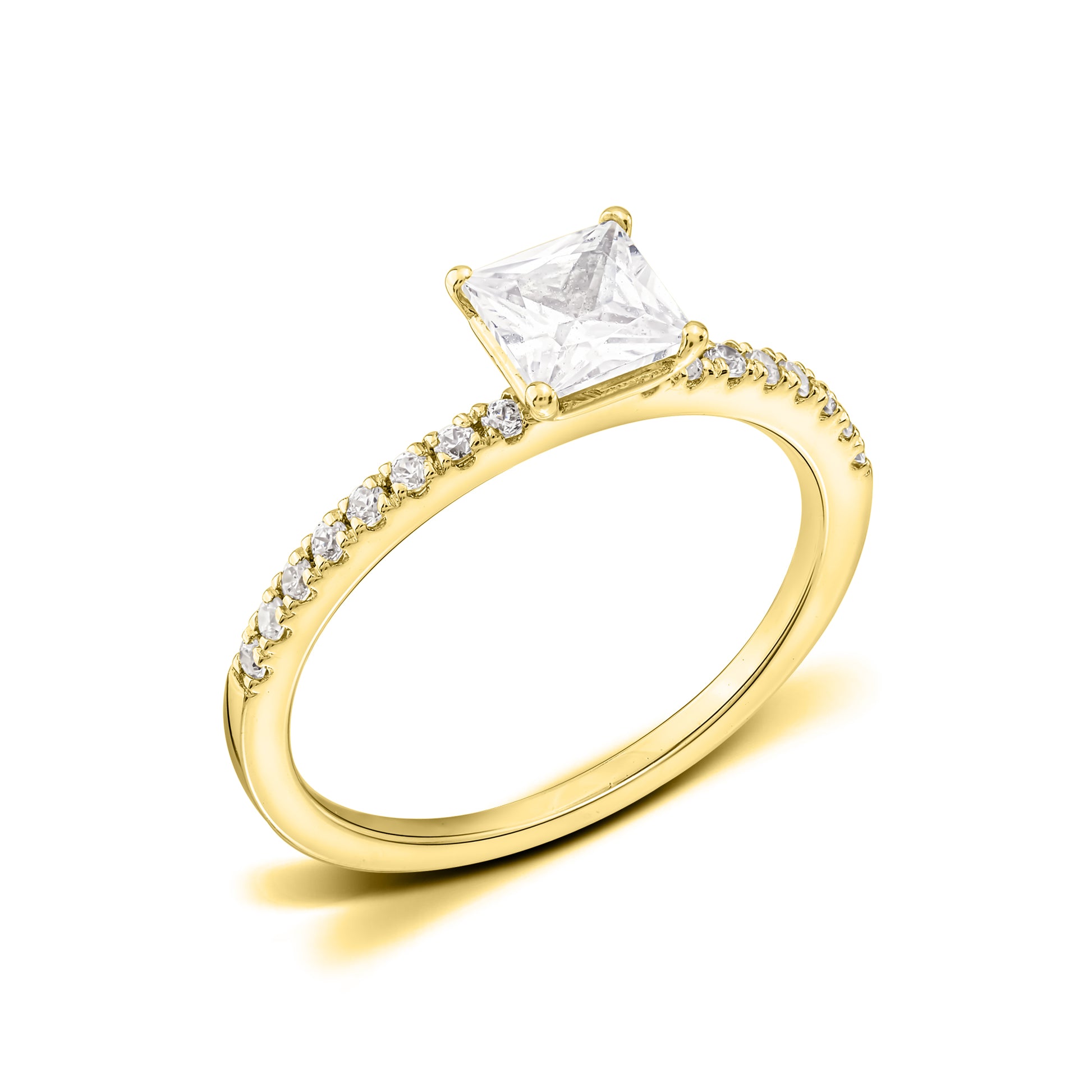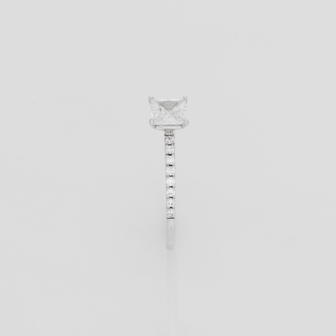 Hailey, like the cut of her center diamond, is a real princess. The eye-catching princess cut center diamond with its characteristic square cut stands out from the crowd and entices everyone to admire its irresistible beauty. The side diamonds of approx. 0.16 Carat that adorn the band enhance the modern look and boast their own brilliance and elegance. An enchanting masterpiece that attracts eyes wherever you go.