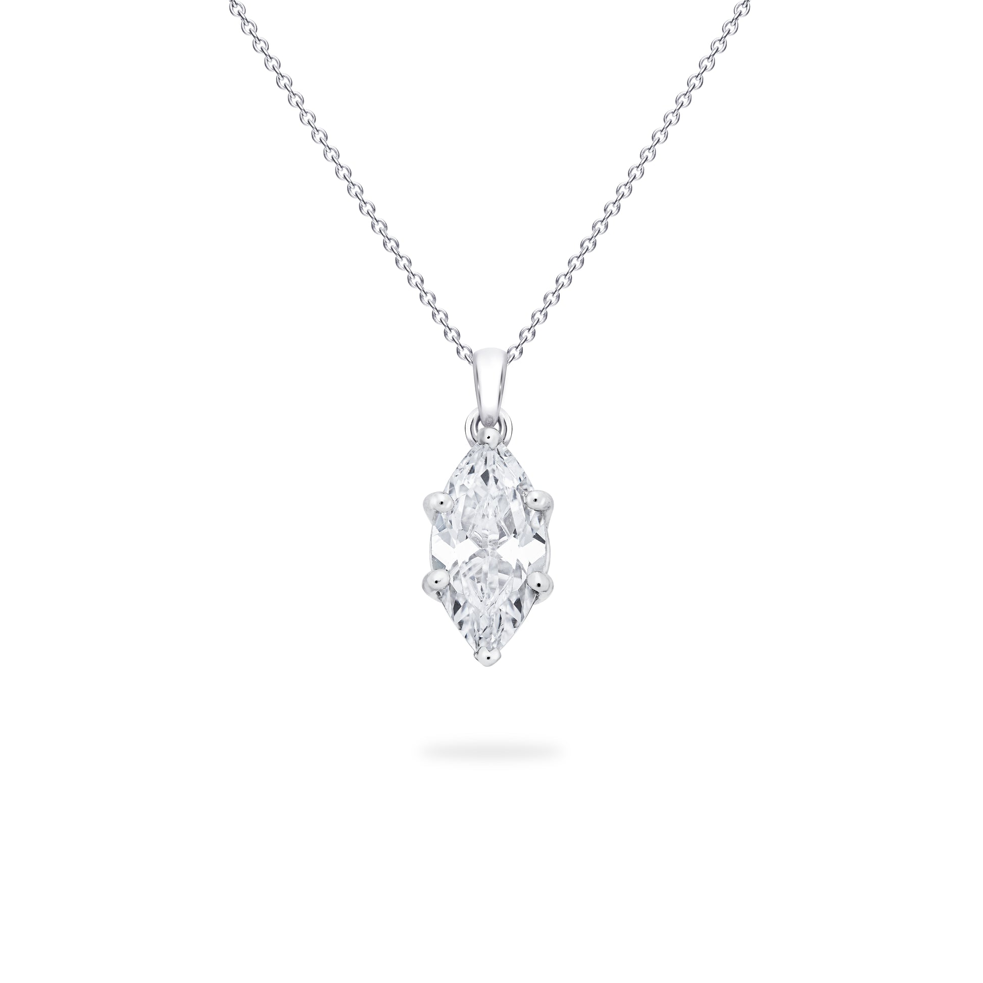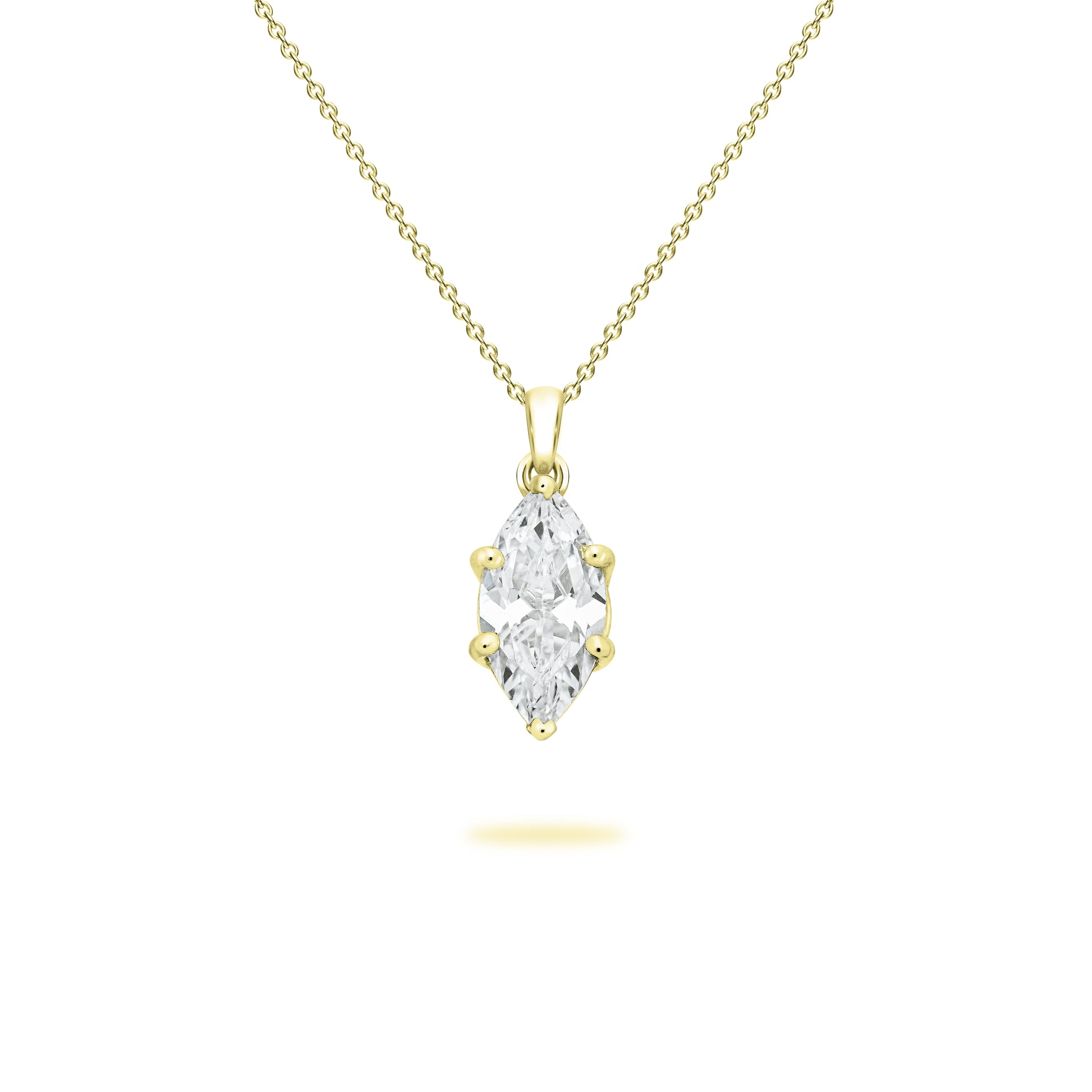 With its distinctive shape and stunning shine, Angelina is perfect for creating an elegant impression and providing a sophisticated touch suitable for any occasion. The diamond's unique navette cut makes the pendant extraordinary and enriches it with elegance. The round prongs that surround the diamond provide a secure and stable fit while allowing the natural beauty of the diamond to shine through. An exceptional beauty that cannot be compared to anything else.