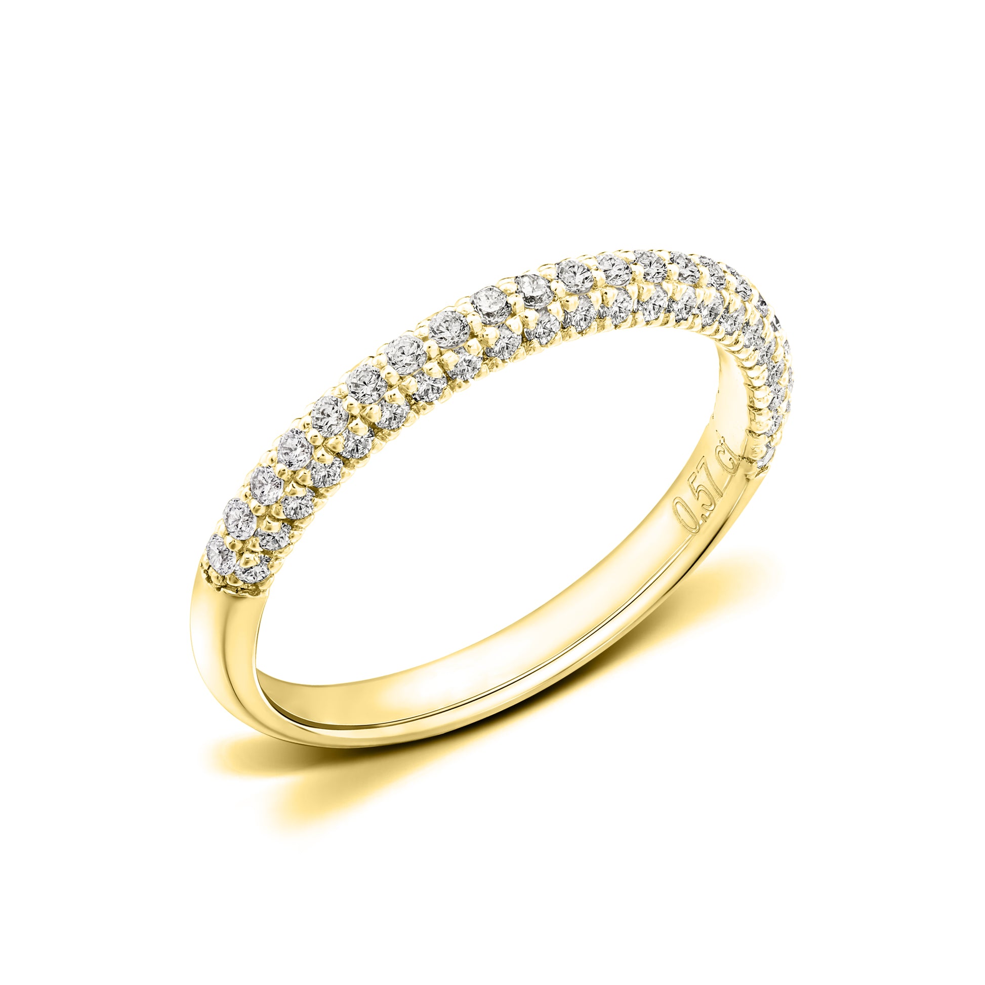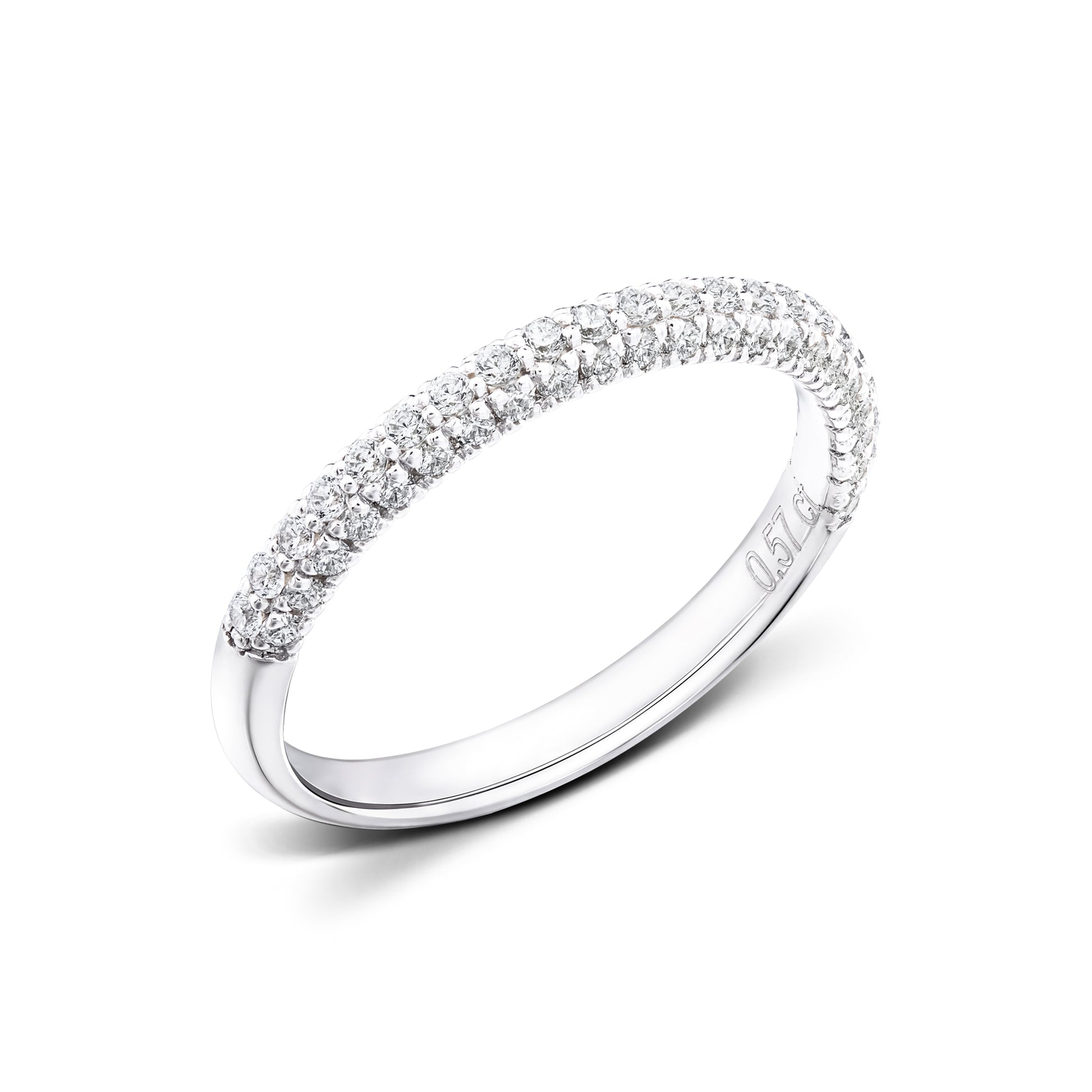 Med sin förtrollande skönhet och strålande design är denna ring den perfekta symbolen för evig kärlek och förening. Ester pryds av enastående runda diamanter som är fördelade över 3 rader i en klassisk halvallians. De 66 skinande diamanterna på totalt ca 0.57 Carat kompromissar inte med varken sin glans eller charm och är omslutna med traditionell kloinfattning. En ögonfångare som kommer förhöja varje kvinnas skönhet.