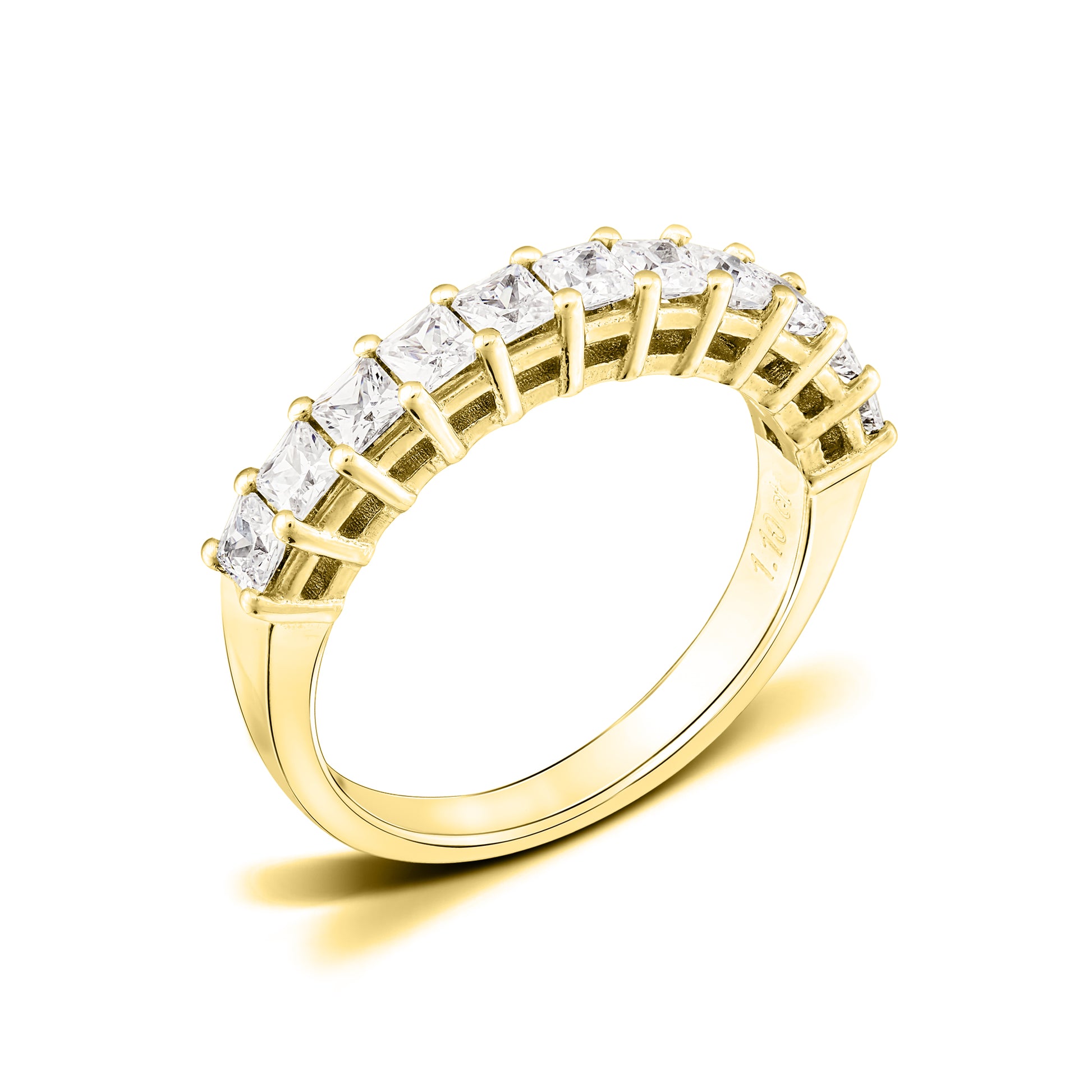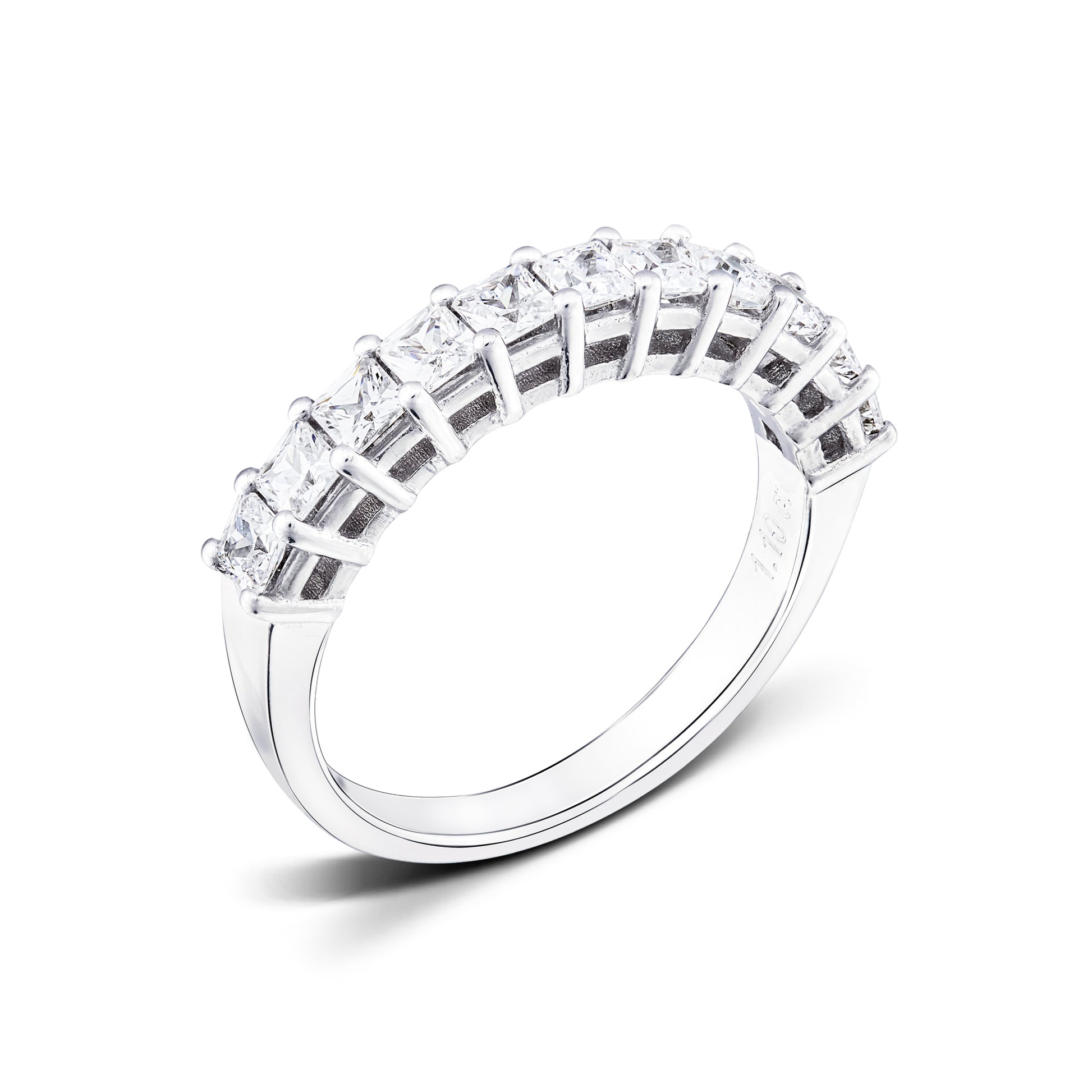 Bredd ca 3.80 mm: 11 diamanter med en storlek på ca 2.50 mm x 2.50 mm. Totalvikt på ca 1.10 Carat.