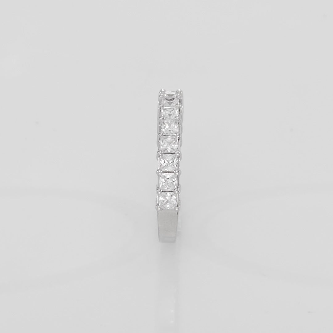 Silvia är en oemotståndlig vigselring med klassisk halvallians som är designad speciellt för kvinnor som önskar att stråla likt en drottning. Ringen pryds av förtjusande prinsesslipade diamanter, som tryggt omsluts av 4 subtila klor. En extraordinär skönhet som kommer låta kärleken lysa starkare än någonsin innan.