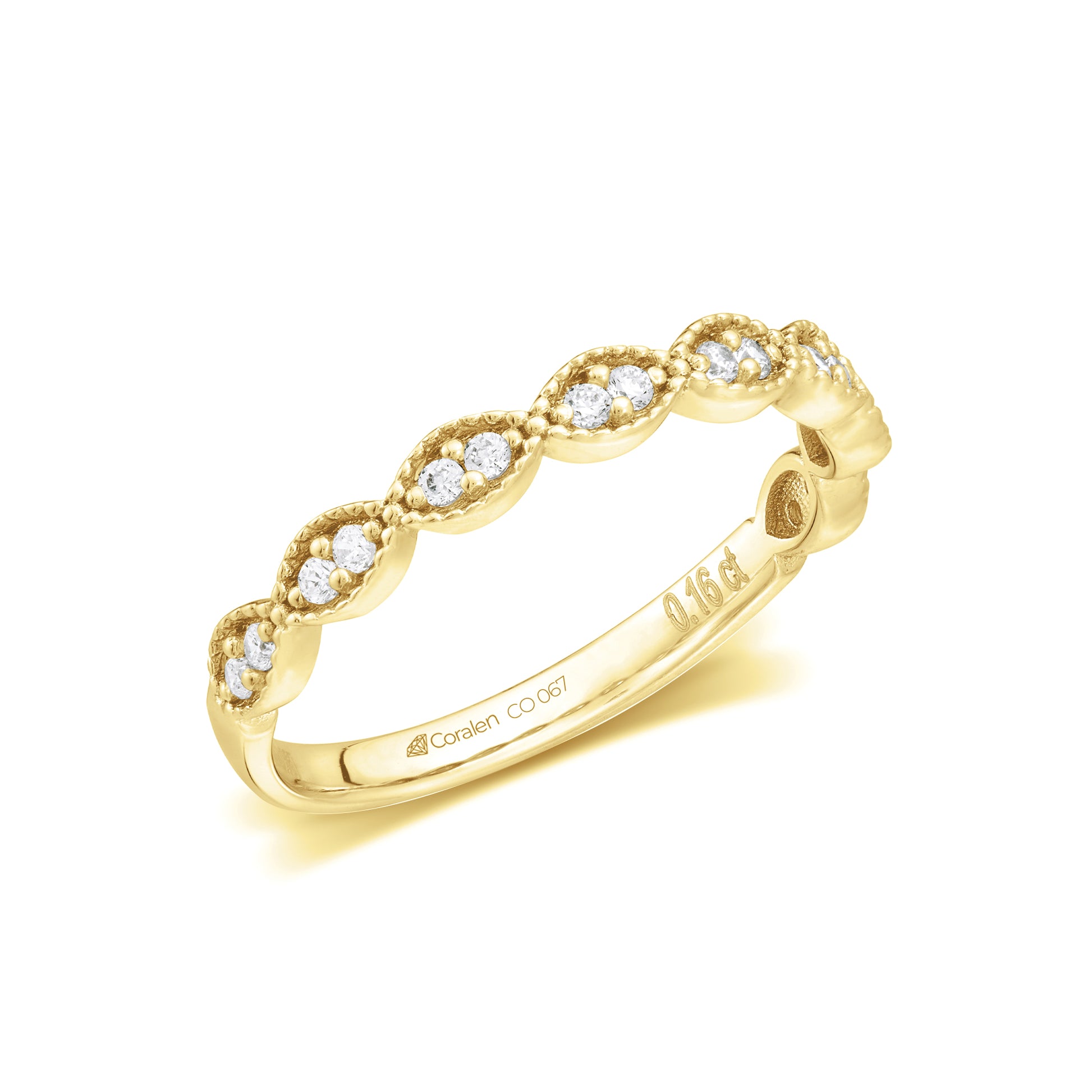 Stig in i en värld av tidlös elegans och sofistikerad skönhet med den strålande alliansringen Dilara. Med sin unika design och detaljer är Dilara en sensationell förening av konst och lyx. Ringens övre halva formar 8 navetter som vardera omsluter 2 glänsande briljanter, vilka tillsammans skapar en strålande gnista som överväldigar med charm. Ringen består av 16 diamanter med en total vikt på ca 0.16 Carat.