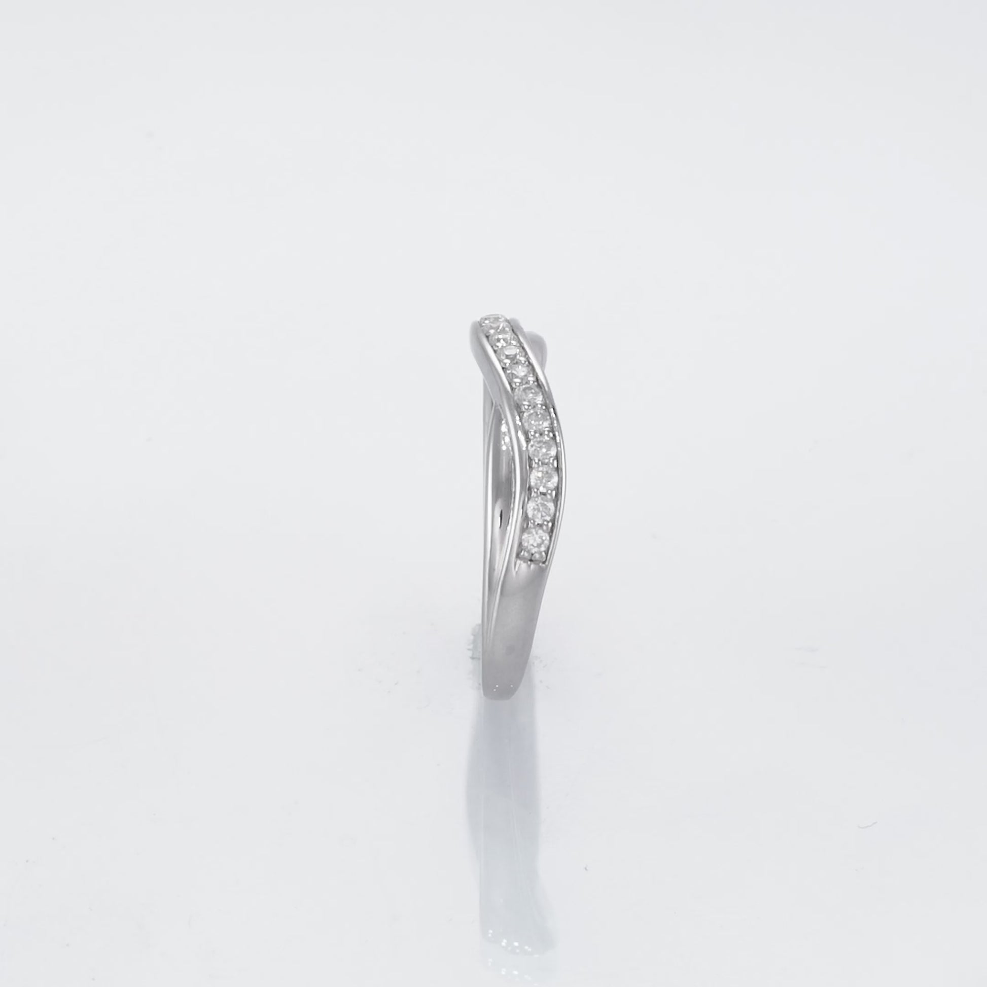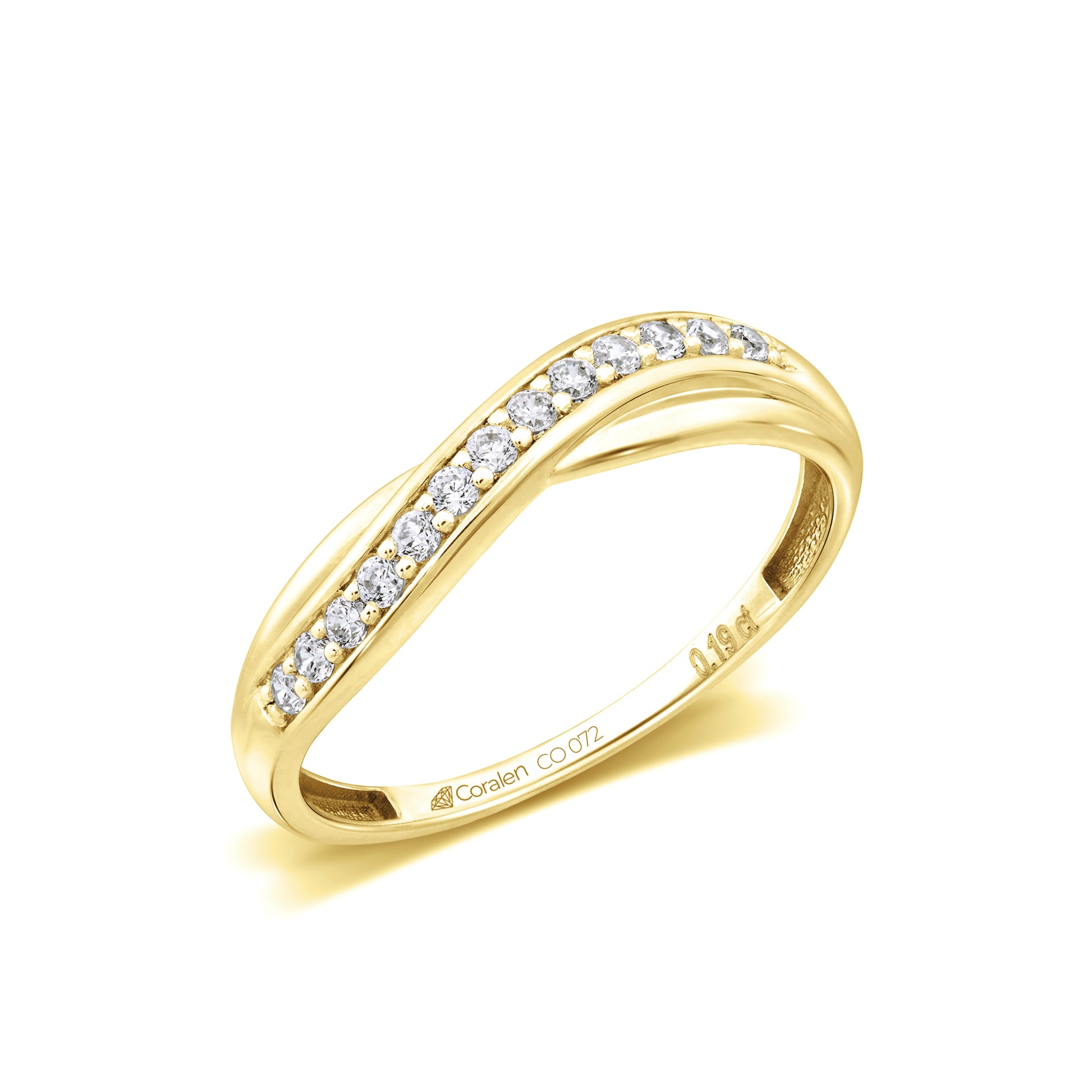 Med sin otroliga design och oslagbara stil är denna ring något utöver det vanliga som kommer överträffa alla förväntningar. Donnas övre halva av skenan är korsad med en rad av 13 gnistrande diamanter som totalt utgör ca 0.19 Carat. Den fantastiska korsningen mellan glänsande diamanter och slät metall skapar en storslagen effekt med en förtrollande estetik.